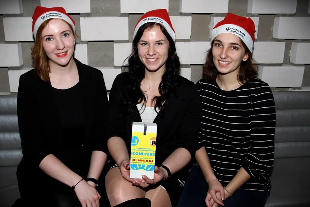 Studenci Politechniki Białostockiej od dwóch tygodni zbierali pieniądze na rzecz Aleksandry Niksy, podopiecznej Fundacji Pomocy Osobom Niepełnosprawnym “Słoneczko”. Obliczyli, że do puszek Fundacji trafiło ponad 14 tysięcy złotych. Dzięki zbiórce podczas uczelnianego Spotkania Opłatkowego ta suma powiększyła się o blisko 3 tysiące. Mam nadzieję, że te pieniądze zmienią się w realną pomoc dla naszej koleżanki – mówił Filip Jarząbek.