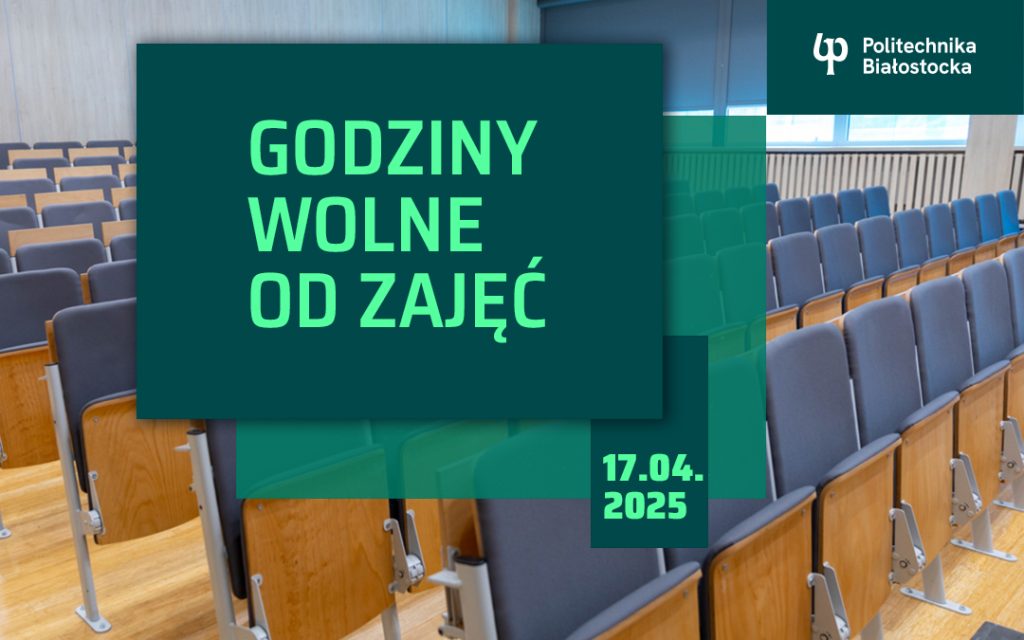 Zarządzeniem Nr 35/2025 Rektor Politechniki Białostockiej ustaliła w dniu 17 kwietnia 2025 r. (czwartek) od godz. 12:00 godziny wolne od zajęć dydaktycznych dla wszystkich studentów i uczestników studiów doktoranckich w Politechnice Białostockiej.