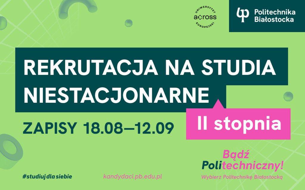 Rekrutacja na studia niestacjonarne II stopnia w Politechnice Białostockiej. Kandydaci mają do wyboru 8 kierunków studiów. Zapisy online do 12 września 2025 r.