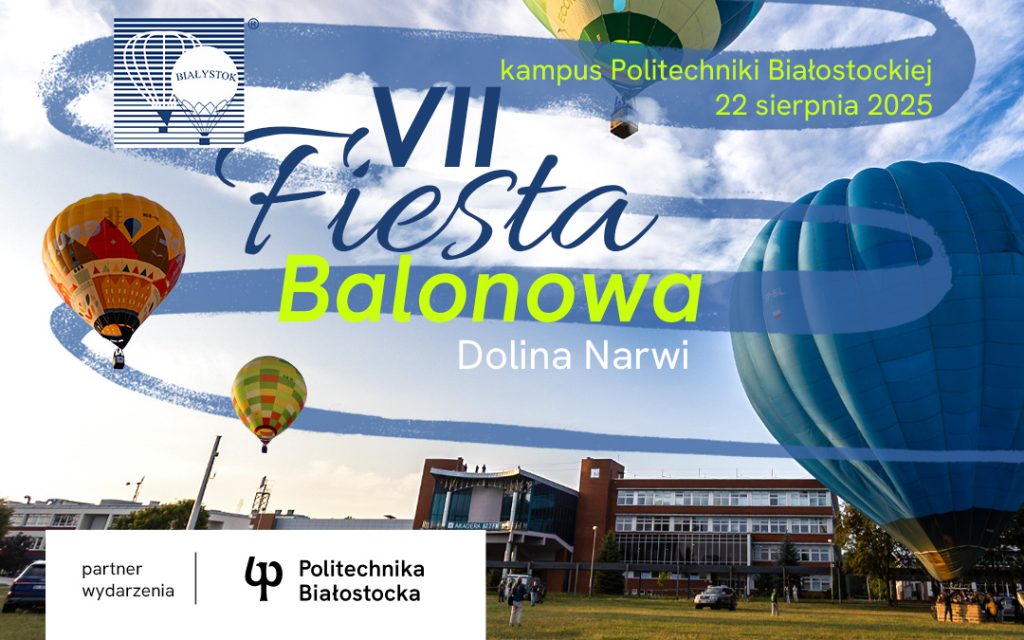 Fiesta Balonowa 2025 – Dolina Narwi po raz kolejny na kampusie Politechniki Białostockiej! To atrakcje wysokich lotów dla całej społeczności akademickiej oraz mieszkańców miasta, które odbędą się 22 sierpnia 2025 r. w godz. 16.00-19.00 na terenie zielonym przed Wydziałem Elektrycznym Politechniki Białostockiej