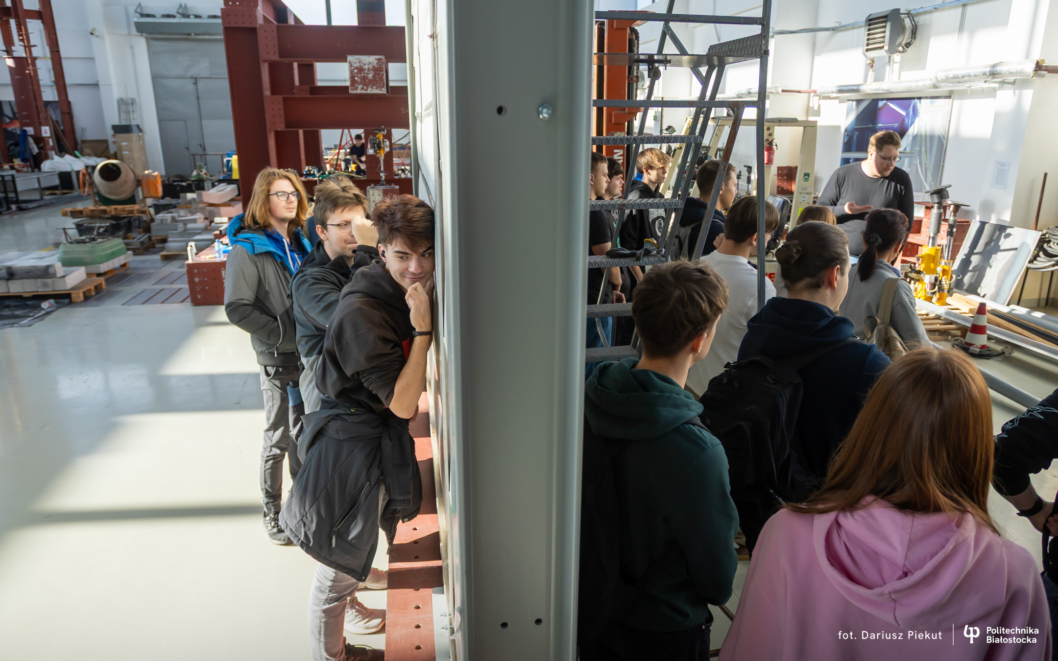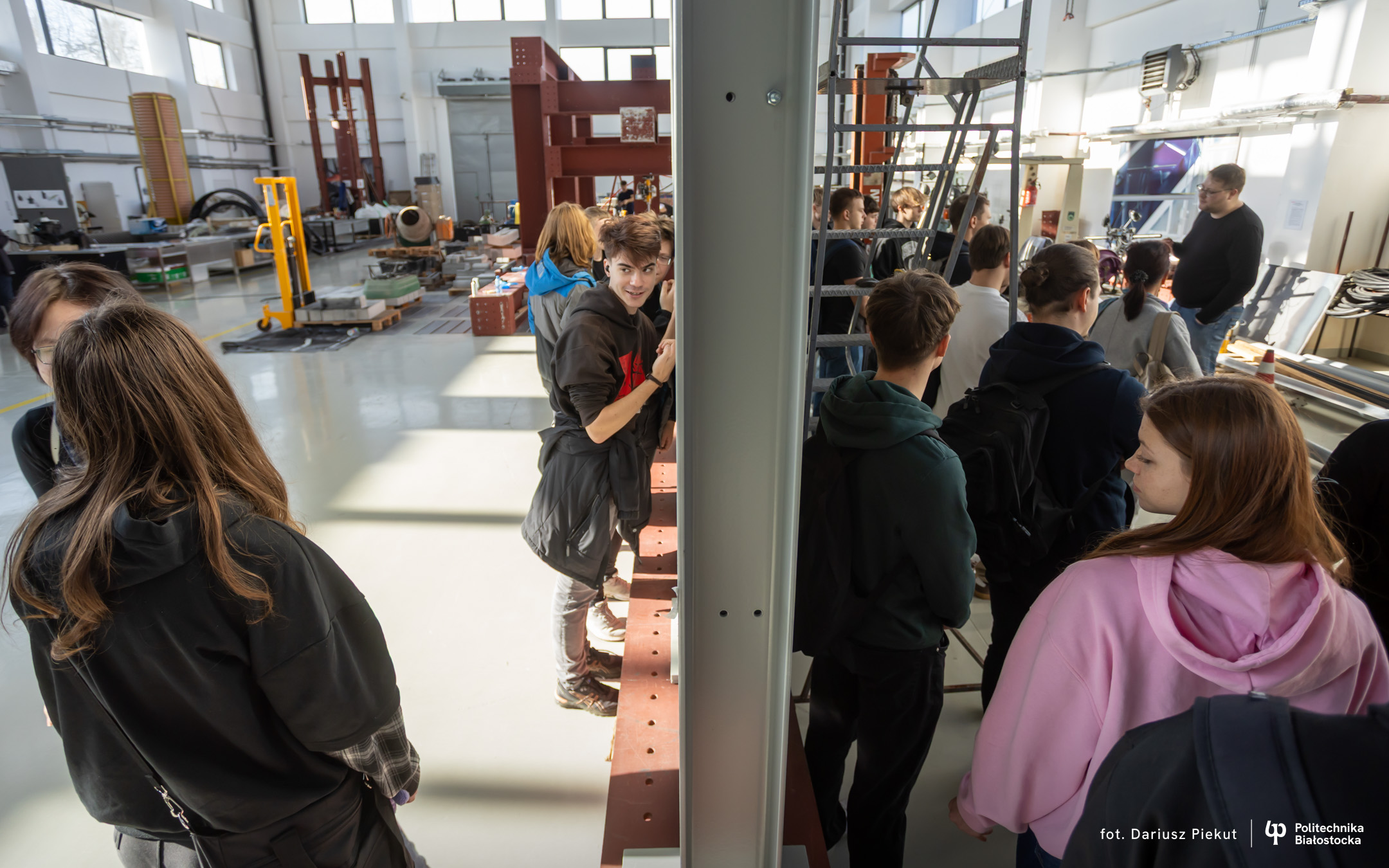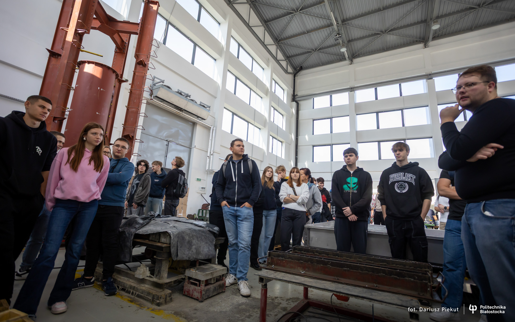 – Cała hala i te wielkie maszyny do badań robią wrażenie – mówi Kamil Truszkowski, uczeń V klasy Technikum nr 1 im. 2 Korpusu Polskiego w Augustowskim Centrum Edukacyjnym. – Chciałbym tu studiować budownictwo. Oprowadzający opowiedział nam o ciekawych możliwościach prowadzenia badań podczas studiów i o tym, że to zdecydowało o dalszych studiach w Szkole Doktorskiej Politechniki Białostockiej.