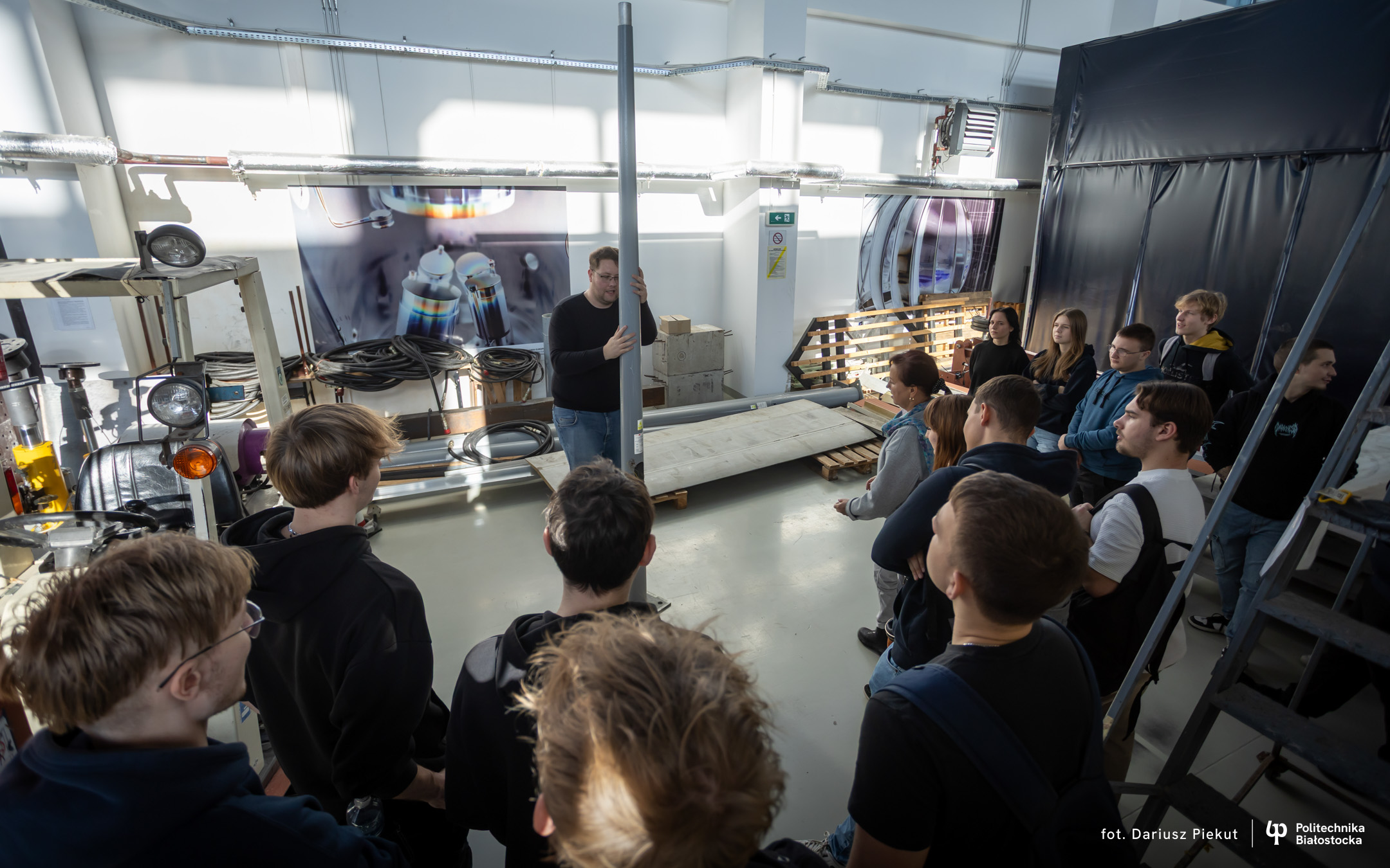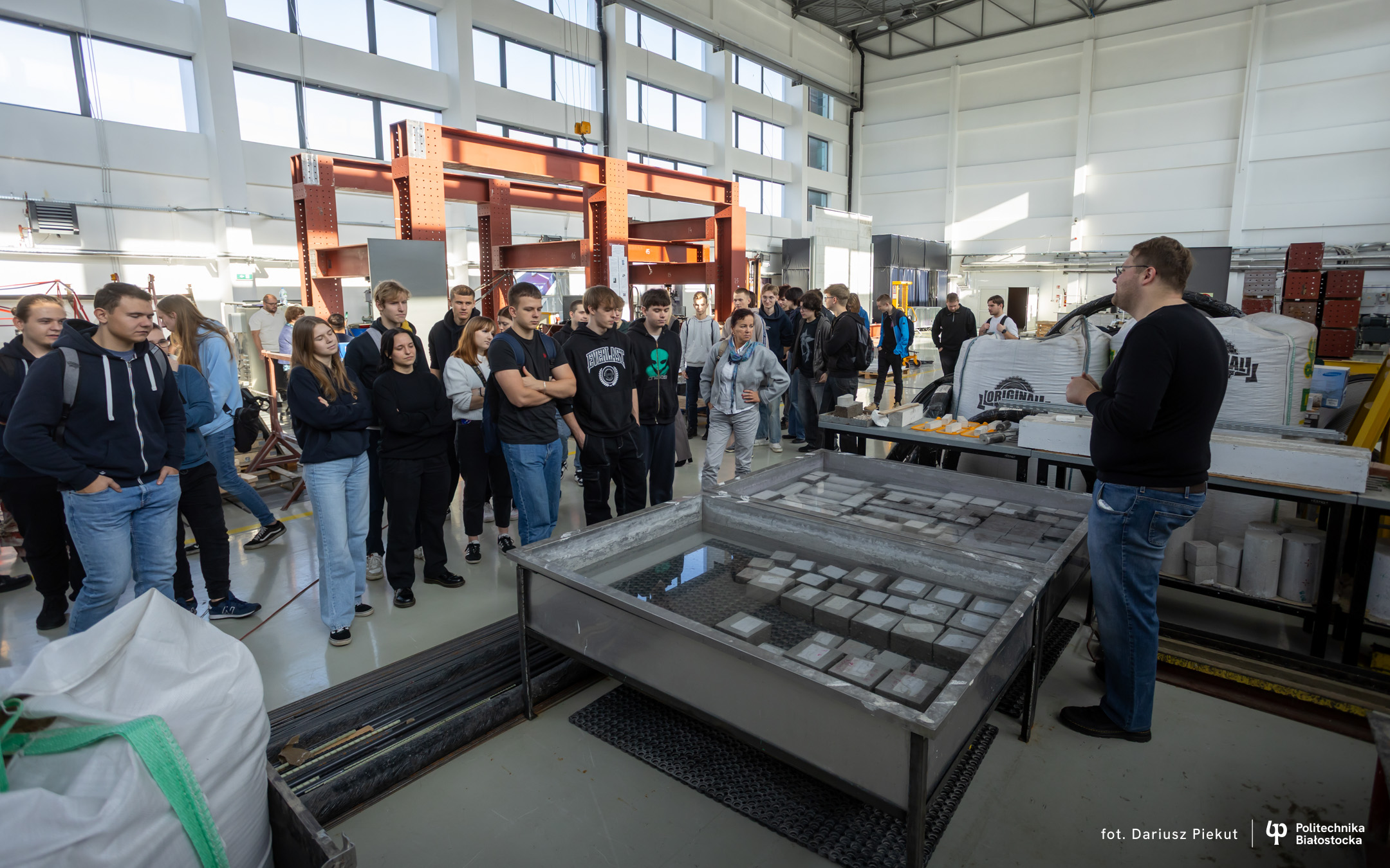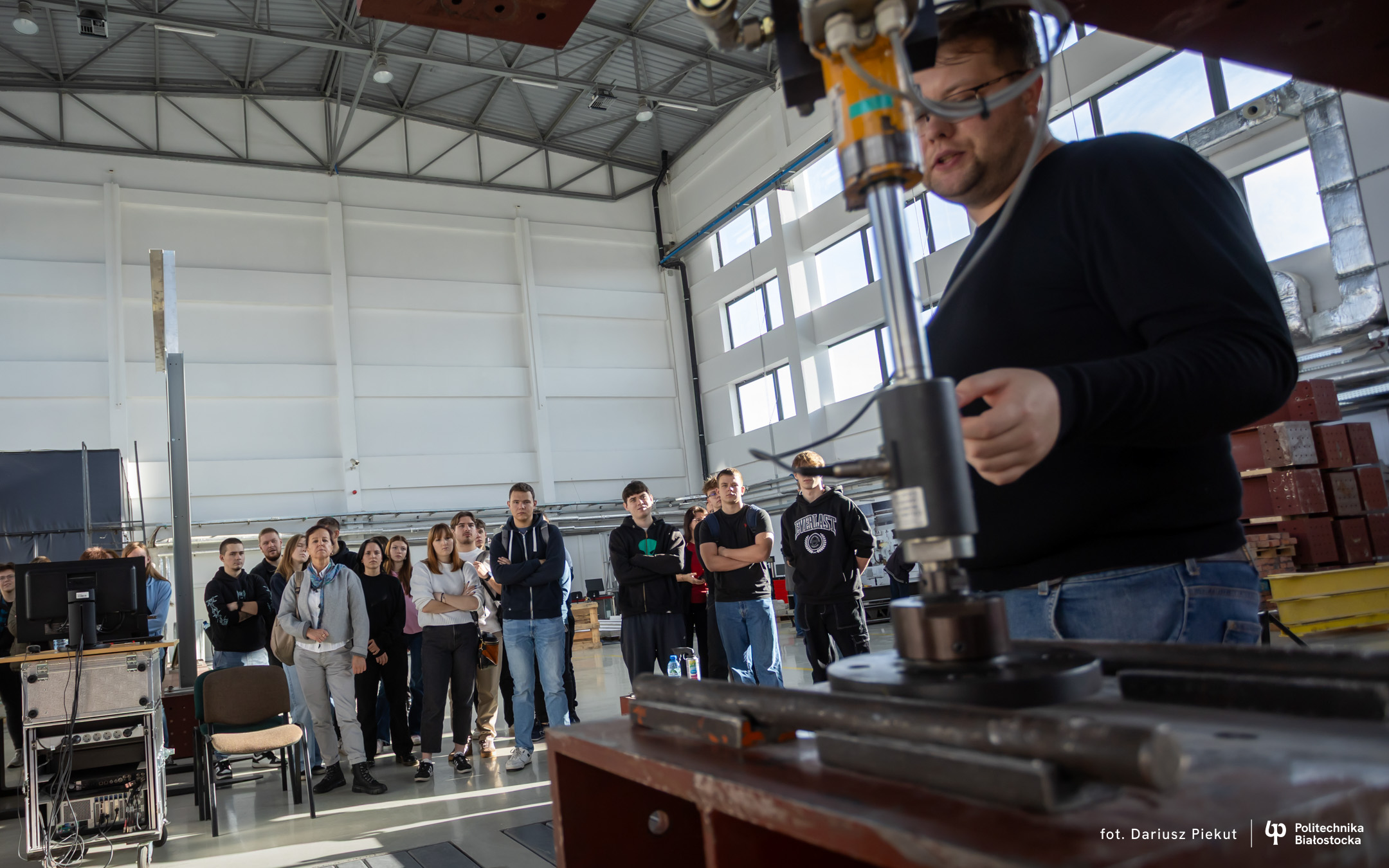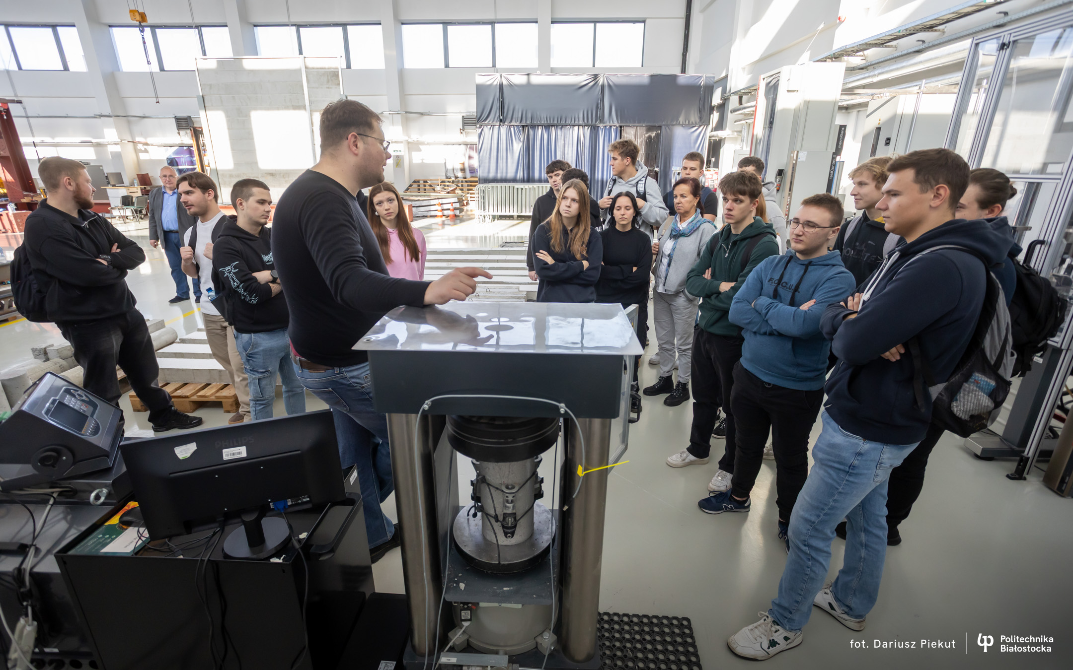 – Cała hala i te wielkie maszyny do badań robią wrażenie – mówi Kamil Truszkowski, uczeń V klasy Technikum nr 1 im. 2 Korpusu Polskiego w Augustowskim Centrum Edukacyjnym. – Chciałbym tu studiować budownictwo. Oprowadzający opowiedział nam o ciekawych możliwościach prowadzenia badań podczas studiów i o tym, że to zdecydowało o dalszych studiach w Szkole Doktorskiej Politechniki Białostockiej.