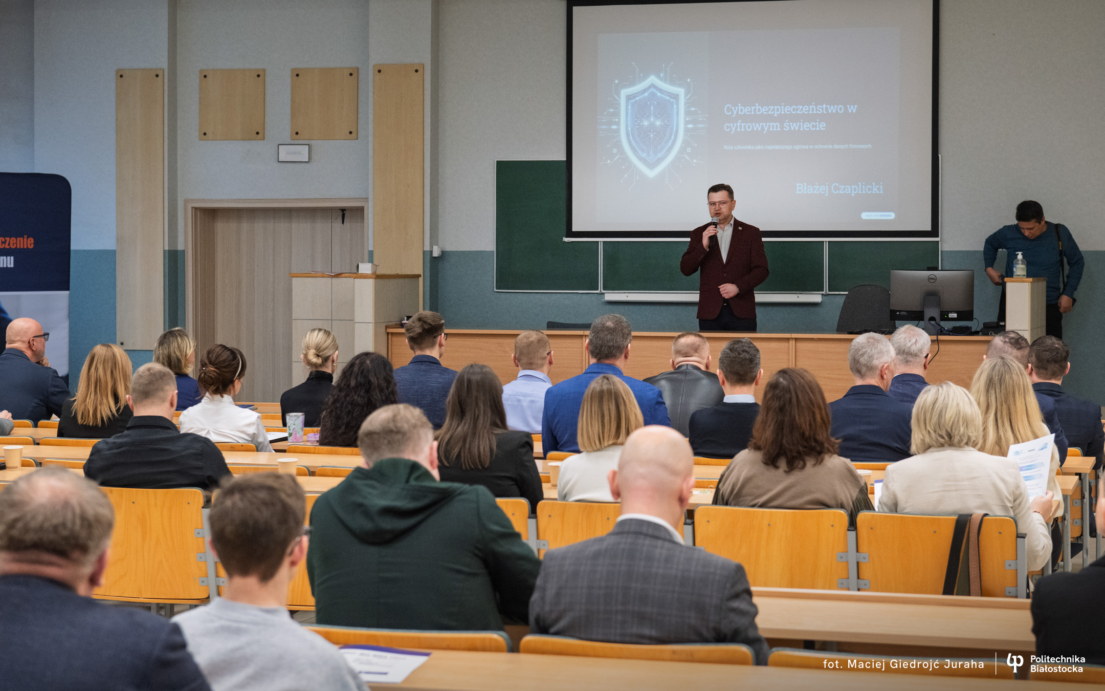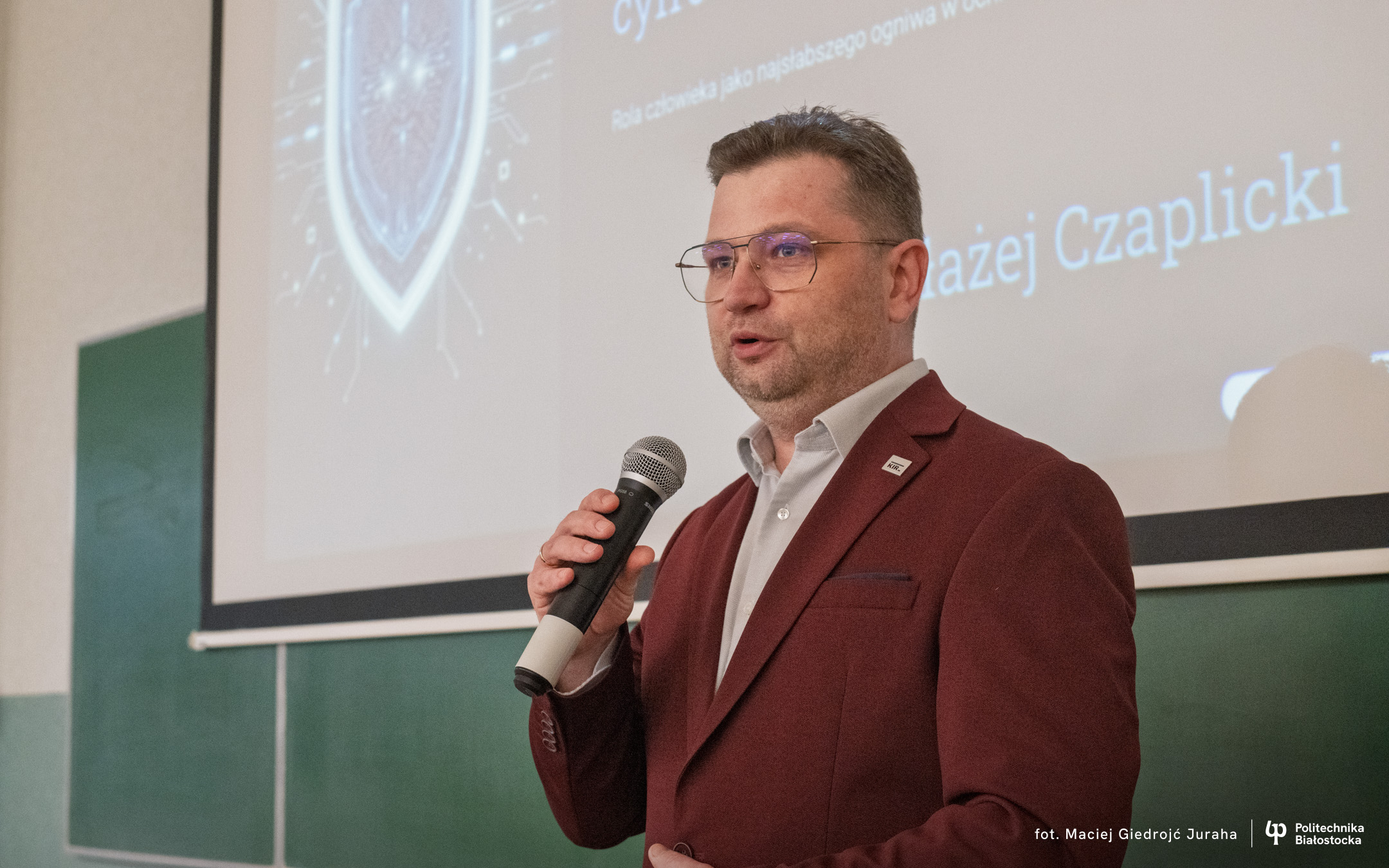 • Błażej Czaplicki (dyrektor białostockiego oddziału KIR) – skupił się na kluczowych zagrożeniach i edukacji w obszarze cyberbezpieczeństwa w cyfrowym świecie,