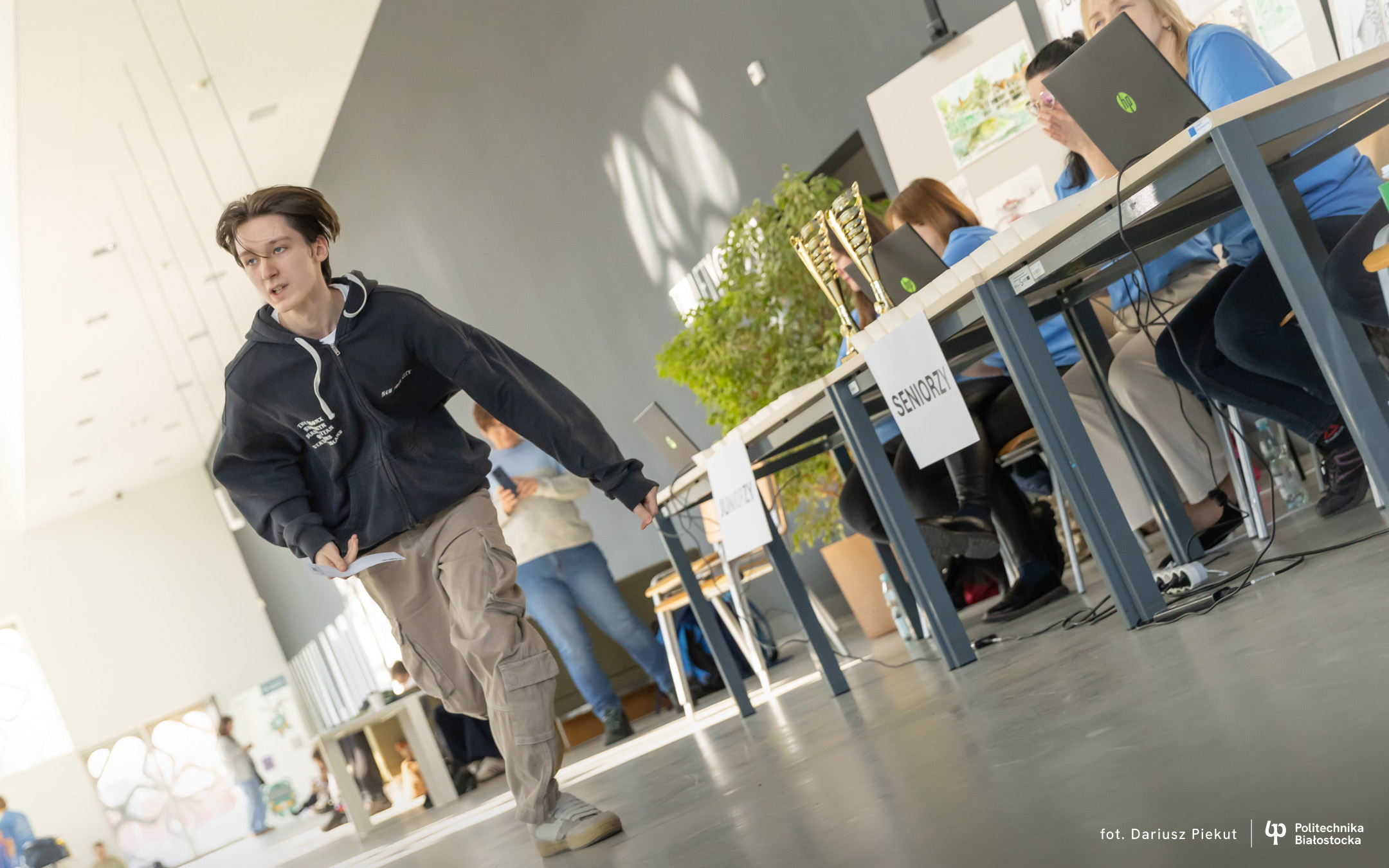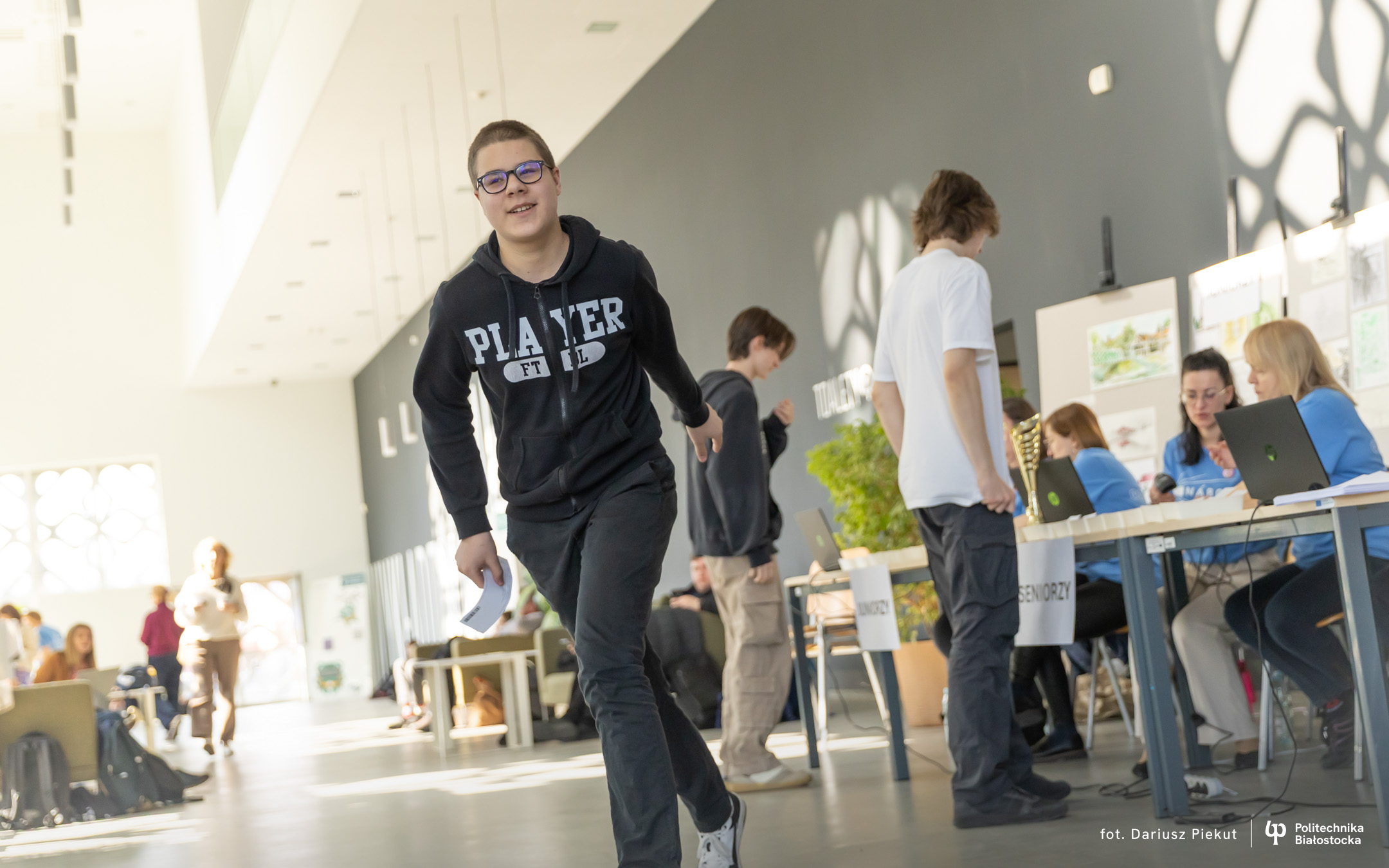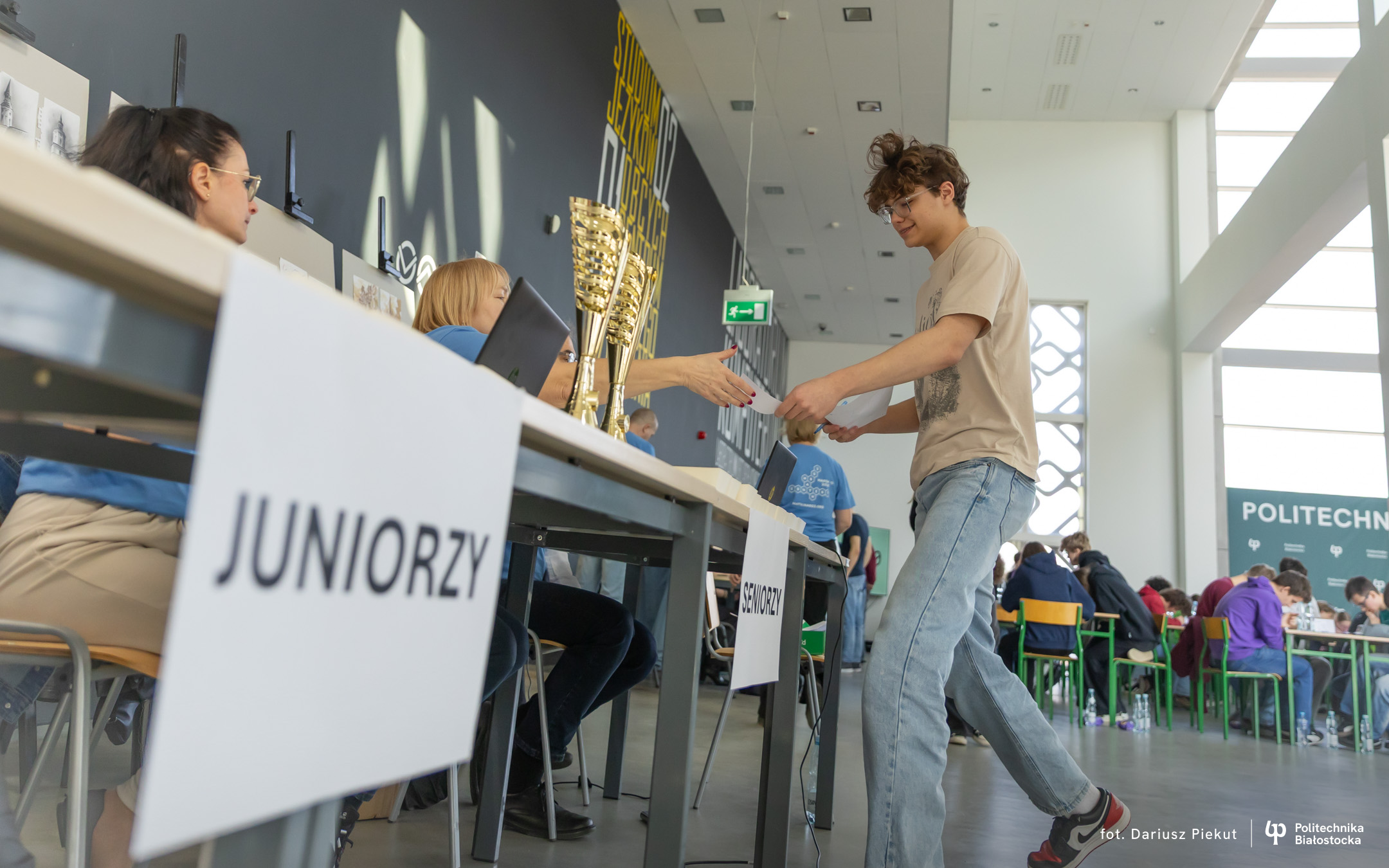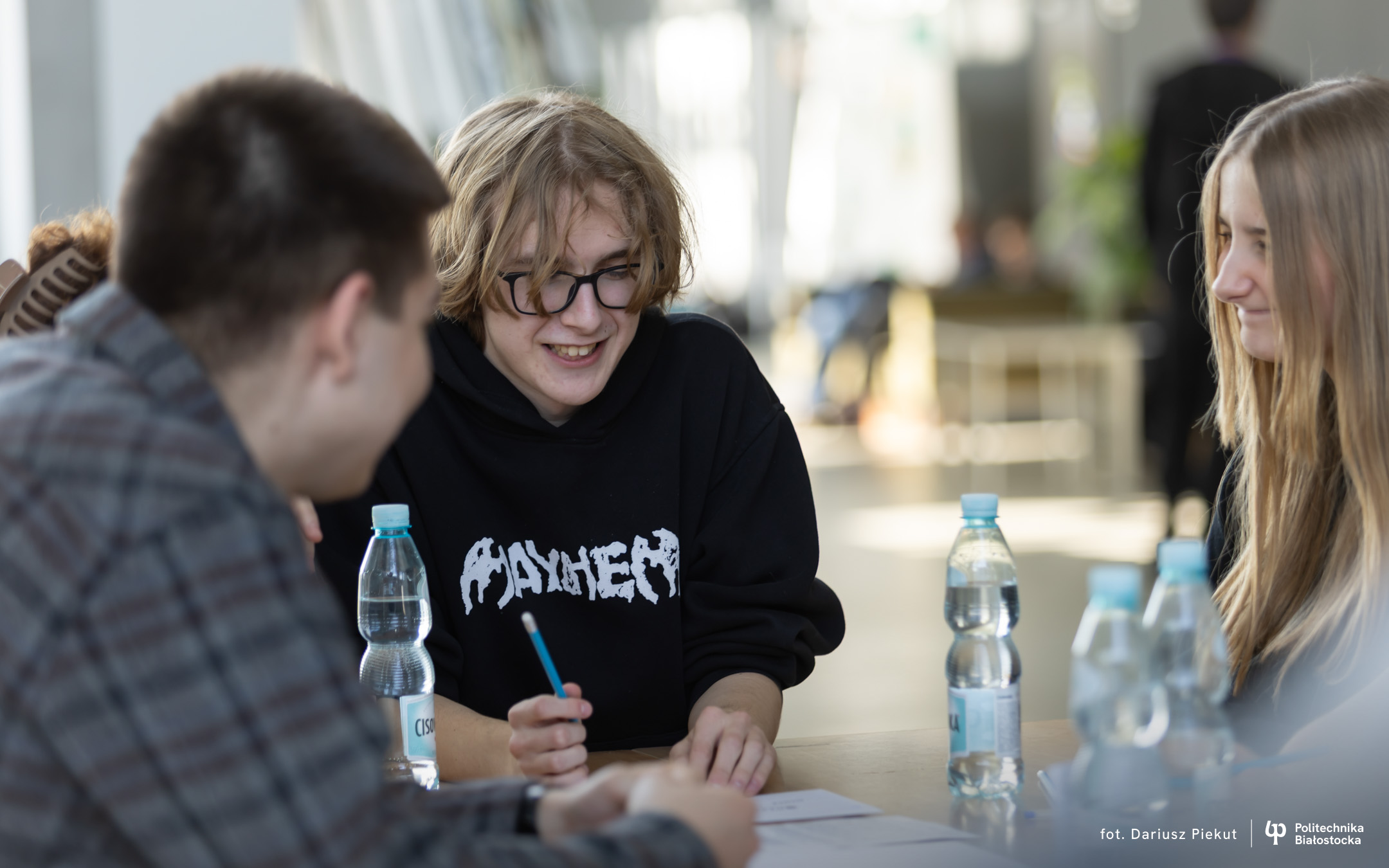 – To jest nas wszystkich tutaj ulubiony konkurs – mówi Kacper Januszkiewicz, maturzysta z II Liceum Ogólnokształcącego w Białymstoku. – Można bardzo dobrze się pobawić, pracować drużynowo. Każdy może w tym samym czasie rozwiązywać inne zadanie i to szybciej idzie.