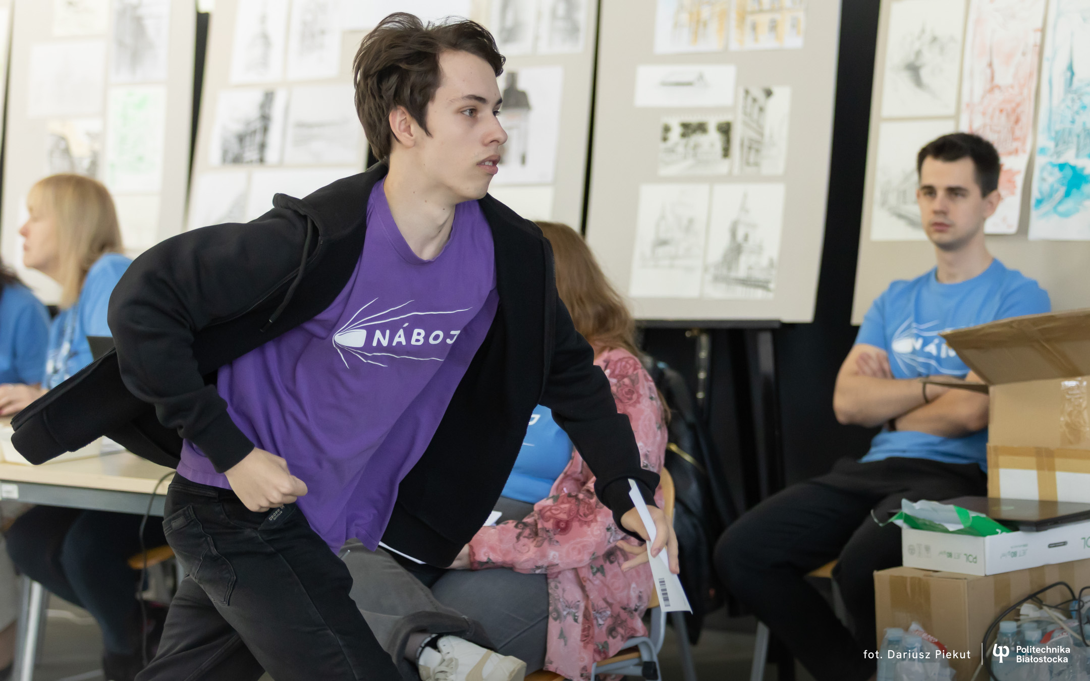 – Po raz trzeci jestem na Náboju – mówi Wojciech Bartnicki, uczeń I Liceum Ogólnokształcącego im Adama Mickiewicza w Białymstoku. Maturzysta bierze udział w zawodach od drugiej klasy liceum. – Po prostu jest to fajny konkurs, jeden z niewielu konkursów drużynowych.