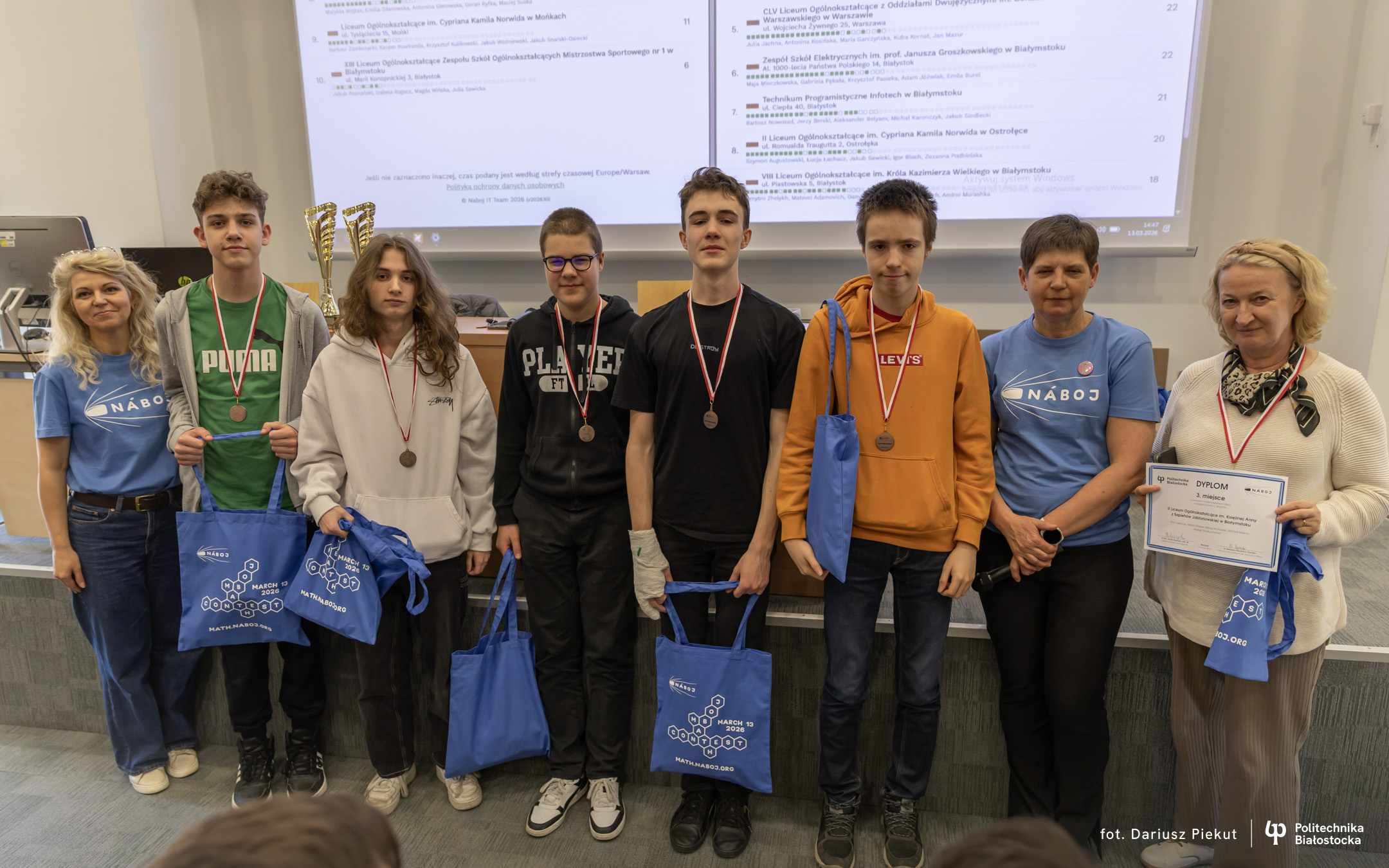 Na międzynarodowe zawody matematyczne Náboj 2026 do Centrum Nowoczesnego Kształcenia Politechniki Białostockiej przyjechała niemal setka uczniów z takich miast jak: Białystok, Lublin, Mońki, Ostrołęka, Warszawa i Wysokie Mazowieckie.