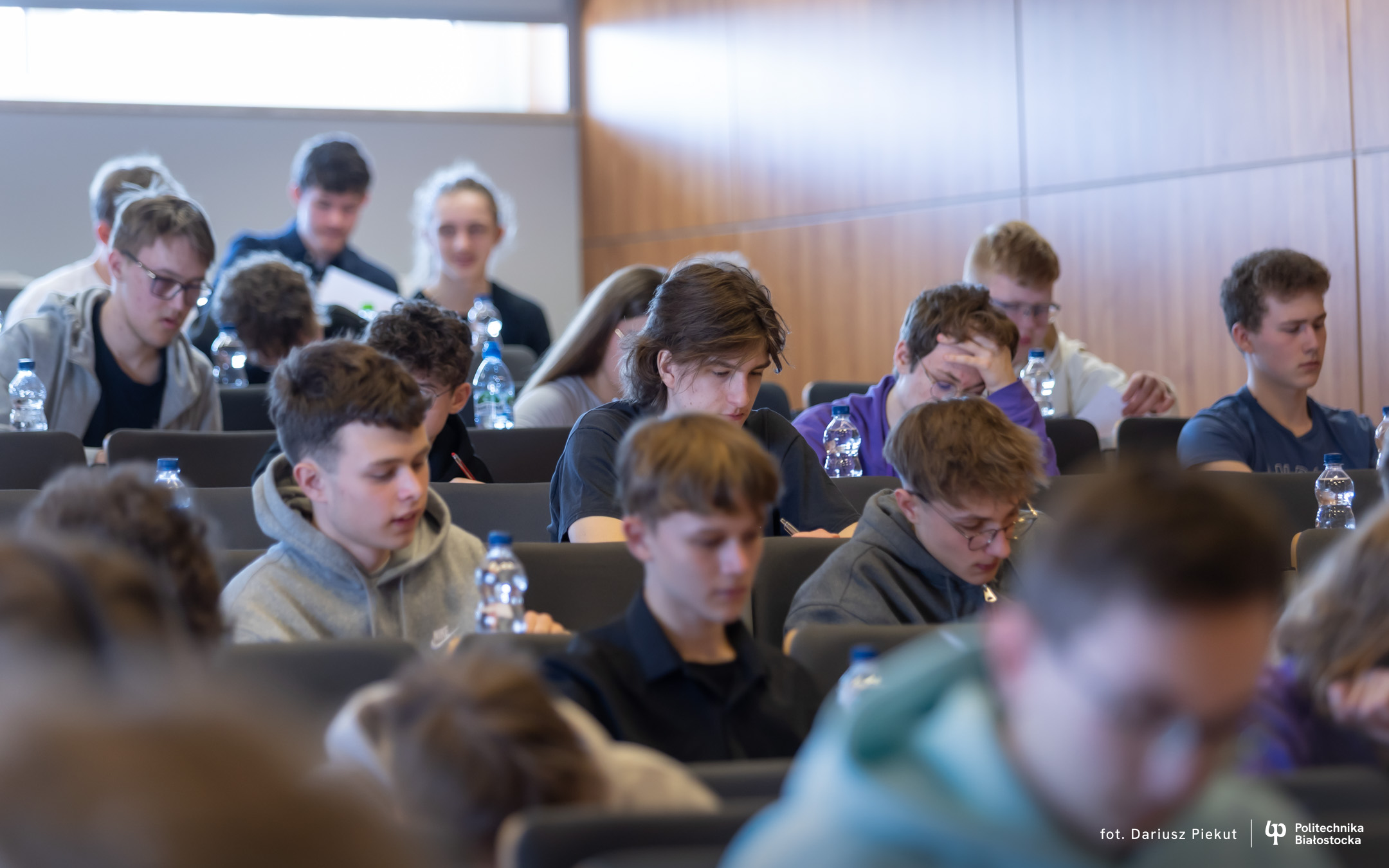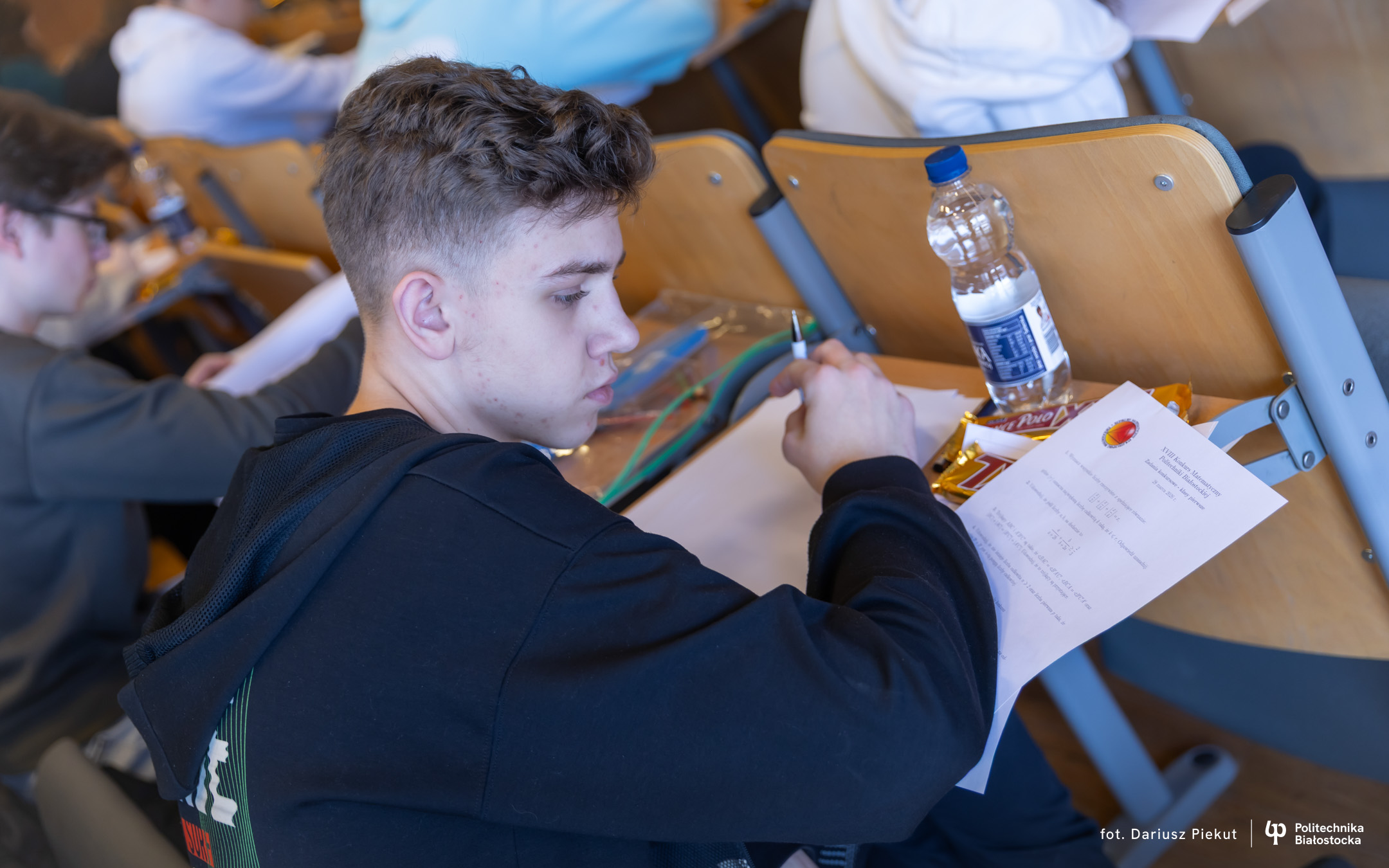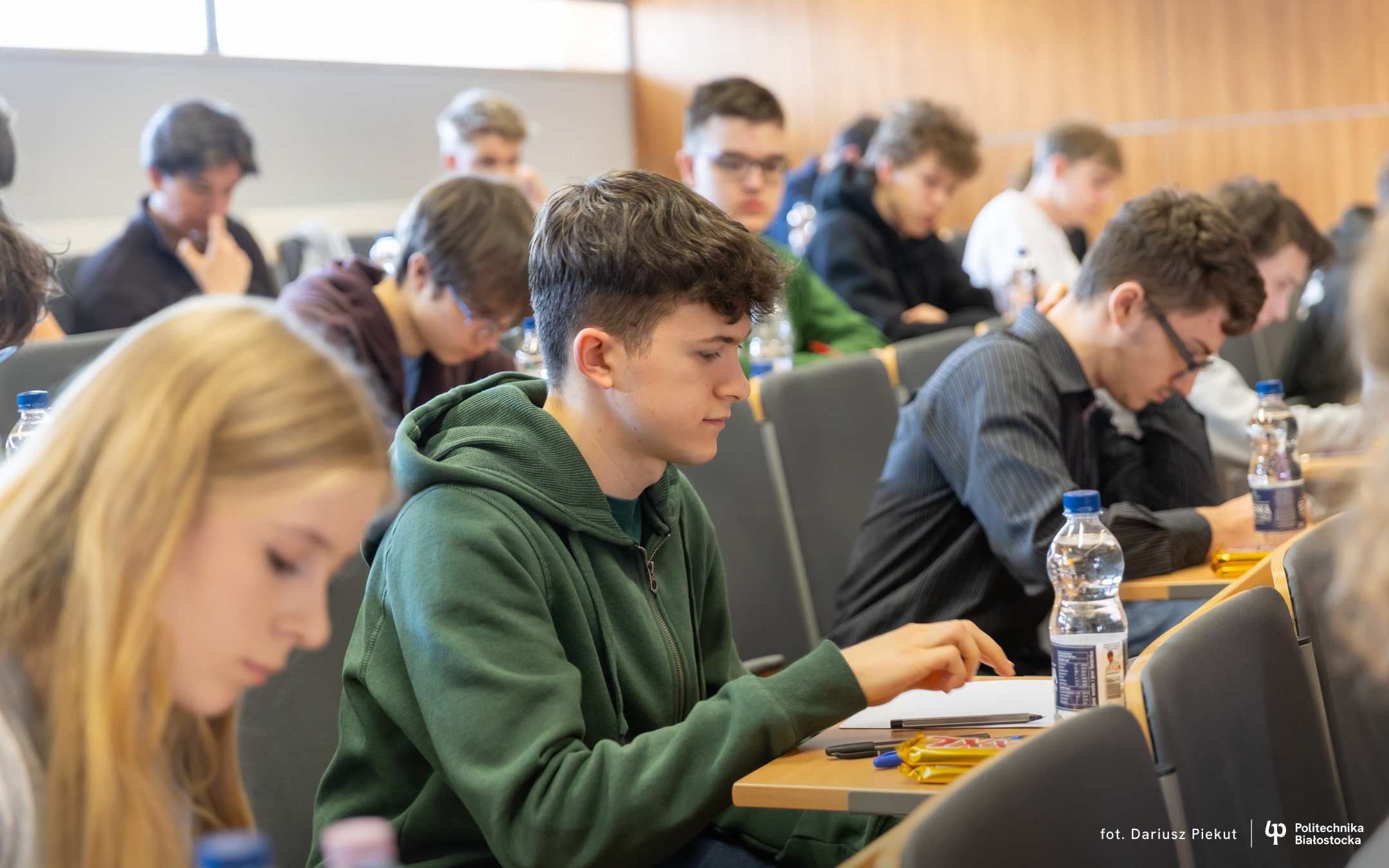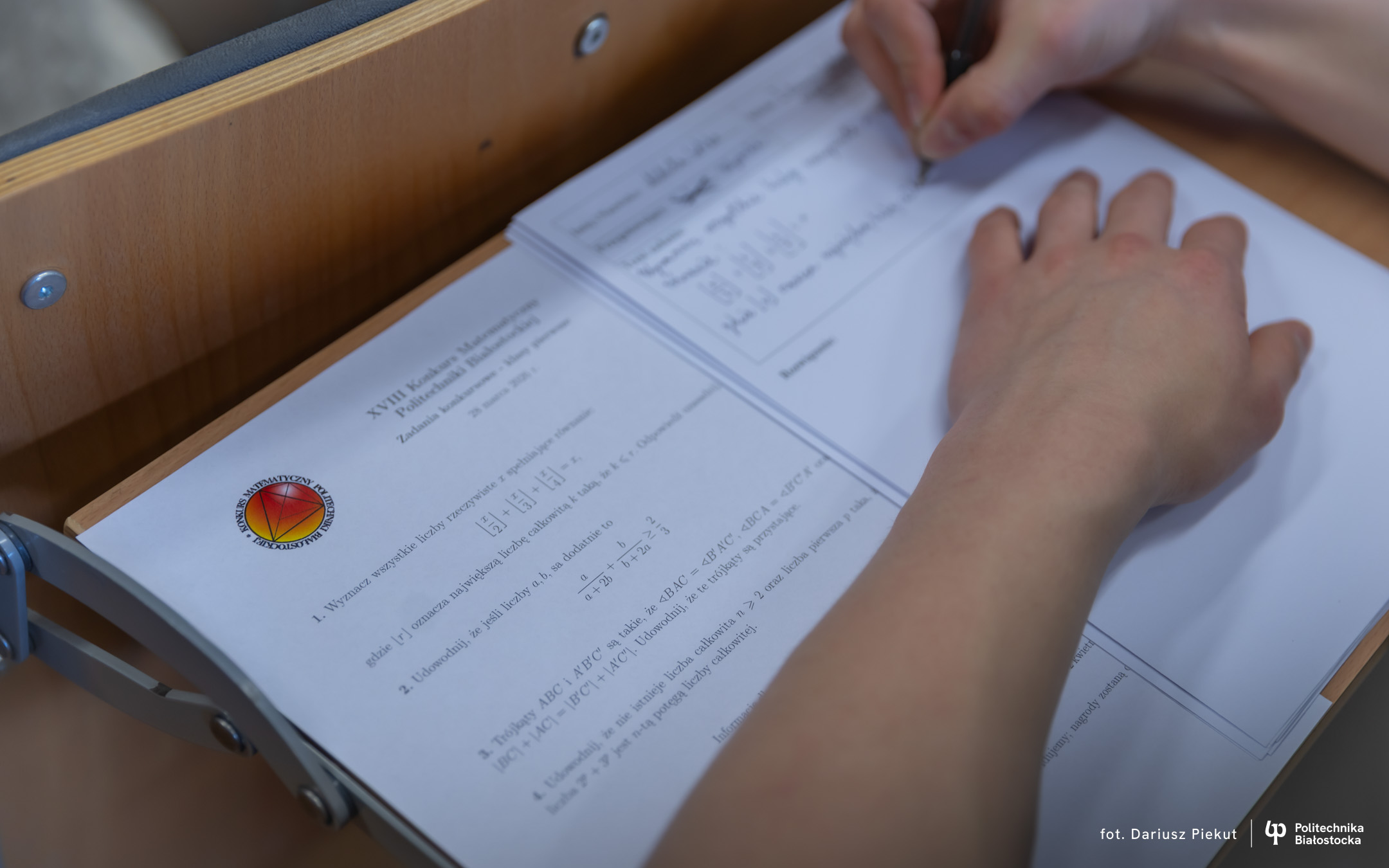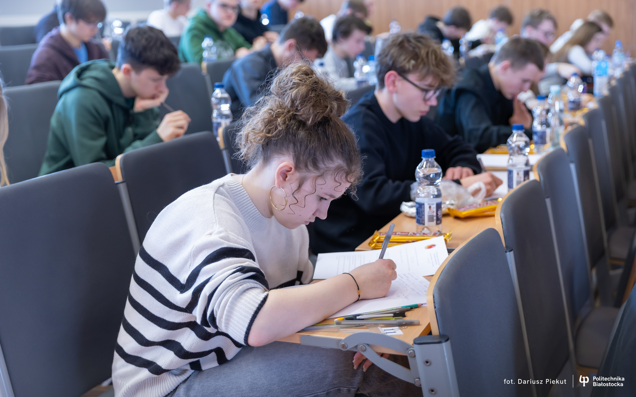 Finał XVIII Konkursu Matematycznego Politechniki Białostockiej zgromadził rekordową liczbę 81 uczestników ( spośród 87 zakwalifikowanych!). Tradycja konkursu, który w przeszłości rozgrywany była pod nazwą Podlaski Konkurs Matematyczny, ewoluowała w stronę wydarzenia o zasięgu ogólnopolskim. I choć trzon uczestników wciąż stanowią uczniowie białostockich liceów (I LO, II LO, VIII LO oraz Akademickiego Liceum Ogólnokształcącego Politechniki Białostockiej), tegoroczny finał udowodnił, że marka konkursu przyciąga talenty z najodleglejszych zakątków kraju. W auli Wydziału Informatyki zasiedli reprezentanci szkół m.in. z Gdyni, Lubartowa, Bielska Podlaskiego i Łomży.