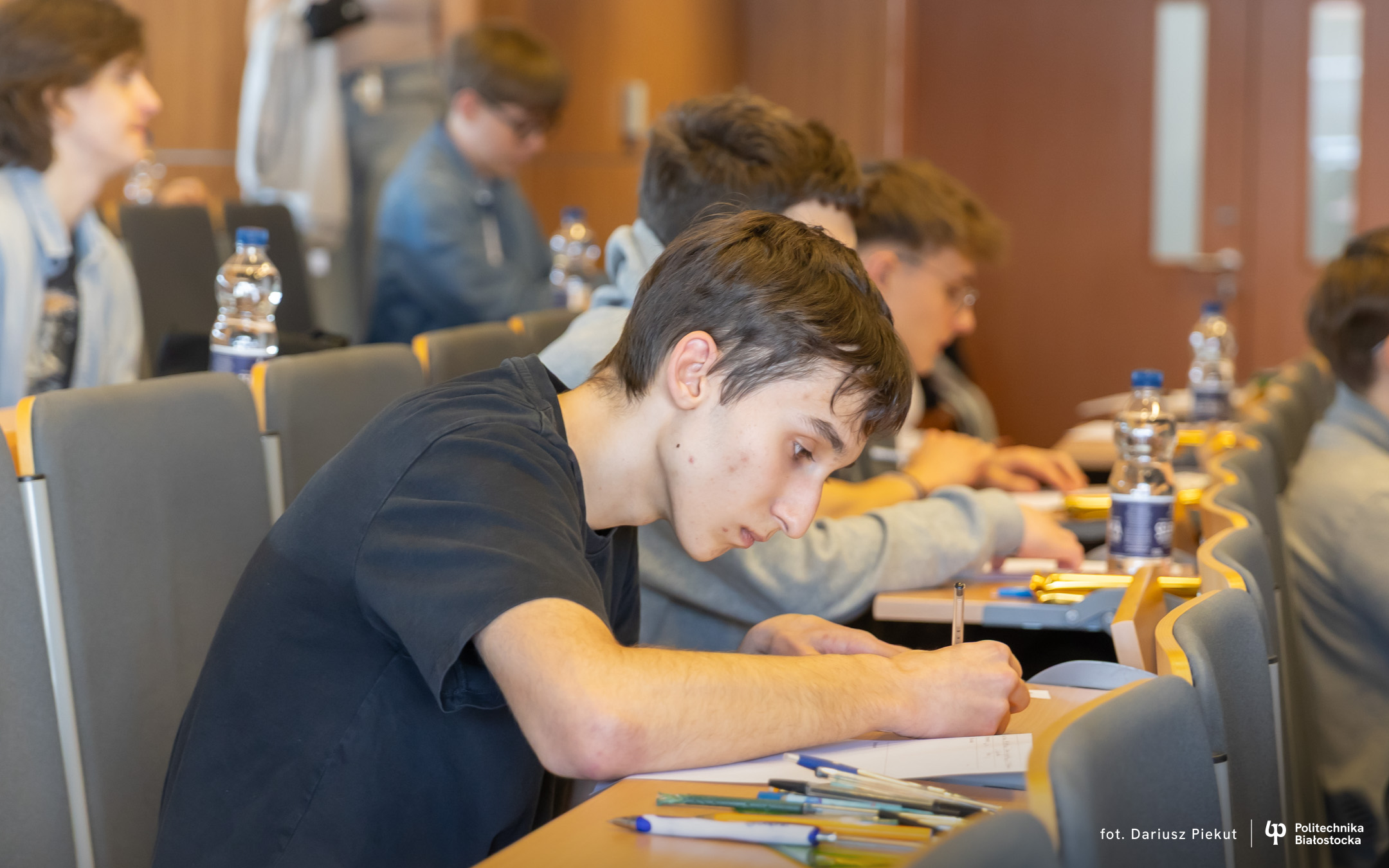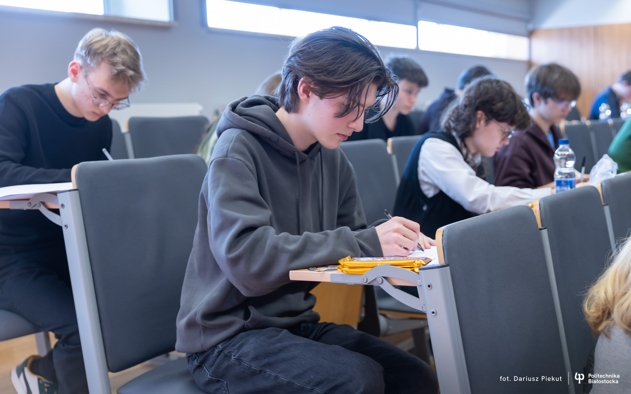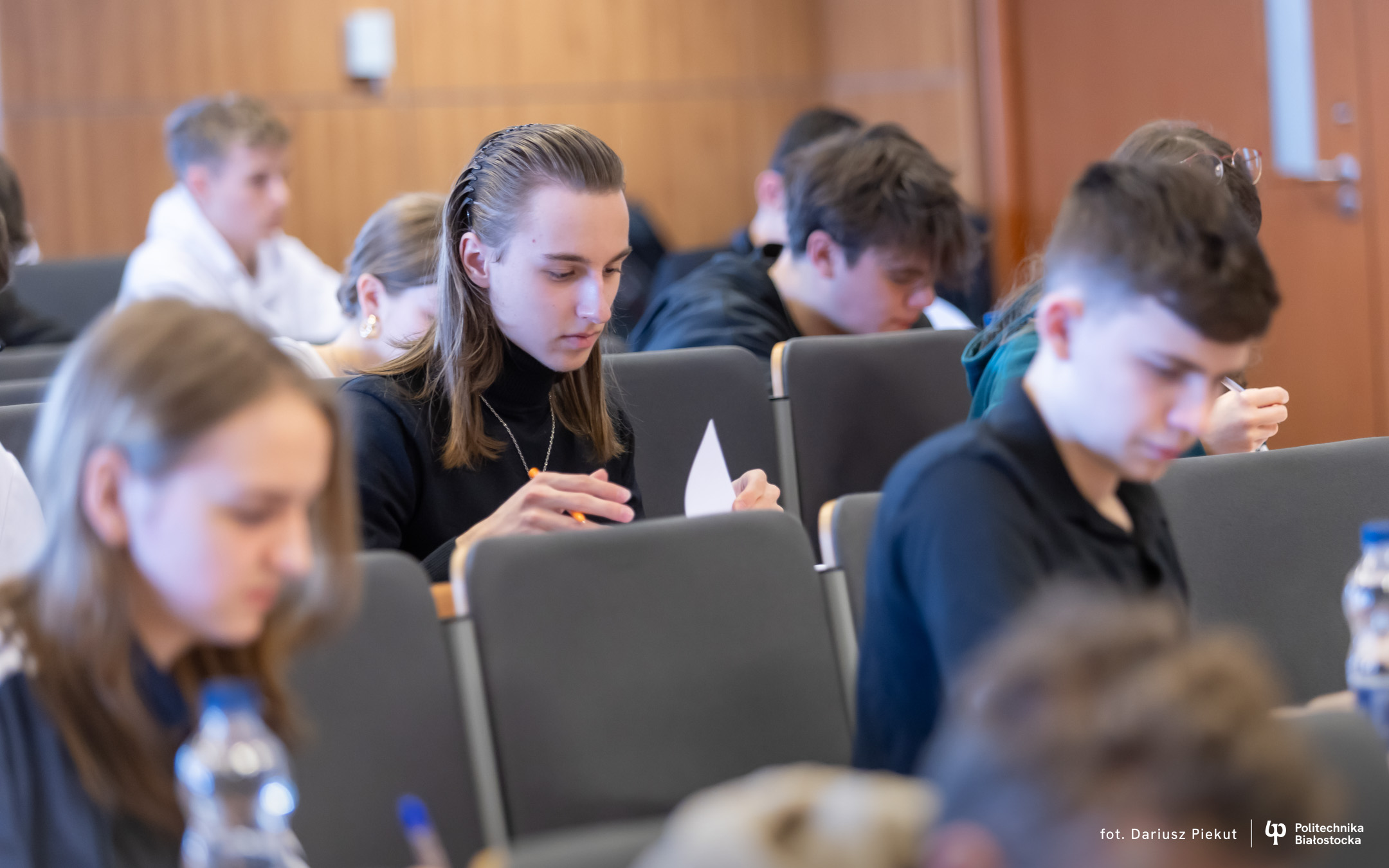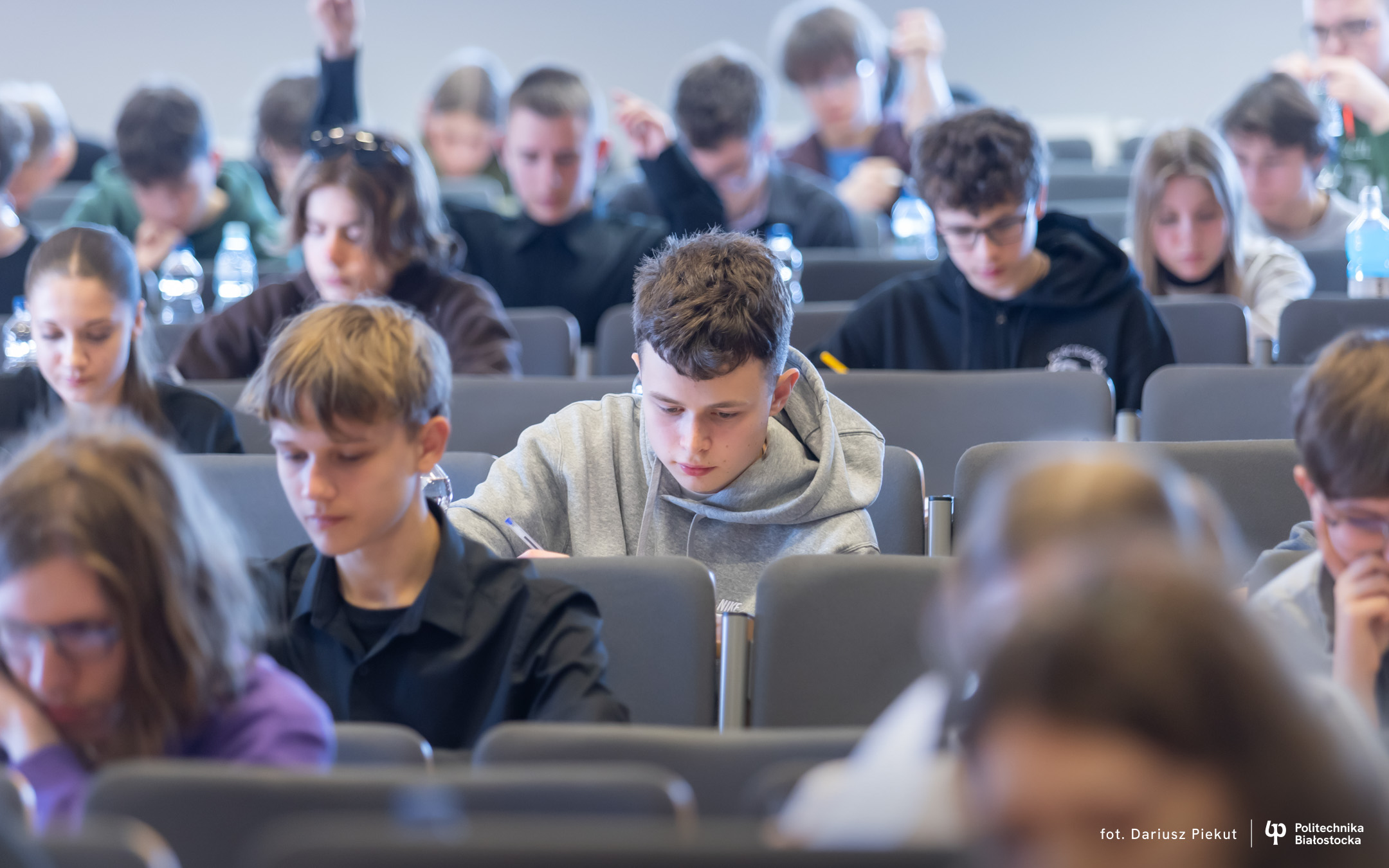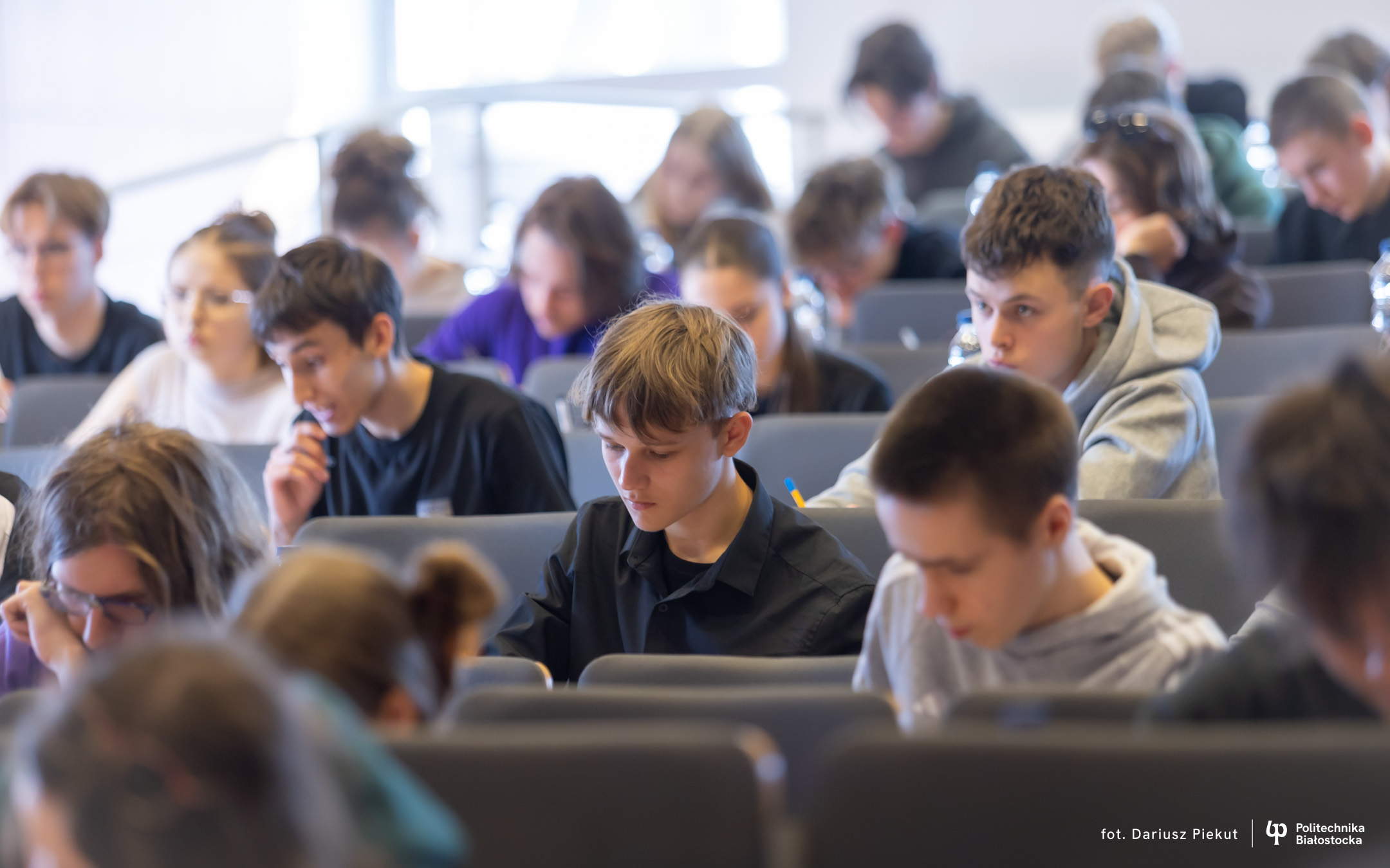 Finał XVIII Konkursu Matematycznego Politechniki Białostockiej zgromadził rekordową liczbę 81 uczestników ( spośród 87 zakwalifikowanych!). Tradycja konkursu, który w przeszłości rozgrywany była pod nazwą Podlaski Konkurs Matematyczny, ewoluowała w stronę wydarzenia o zasięgu ogólnopolskim. I choć trzon uczestników wciąż stanowią uczniowie białostockich liceów (I LO, II LO, VIII LO oraz Akademickiego Liceum Ogólnokształcącego Politechniki Białostockiej), tegoroczny finał udowodnił, że marka konkursu przyciąga talenty z najodleglejszych zakątków kraju. W auli Wydziału Informatyki zasiedli reprezentanci szkół m.in. z Gdyni, Lubartowa, Bielska Podlaskiego i Łomży.