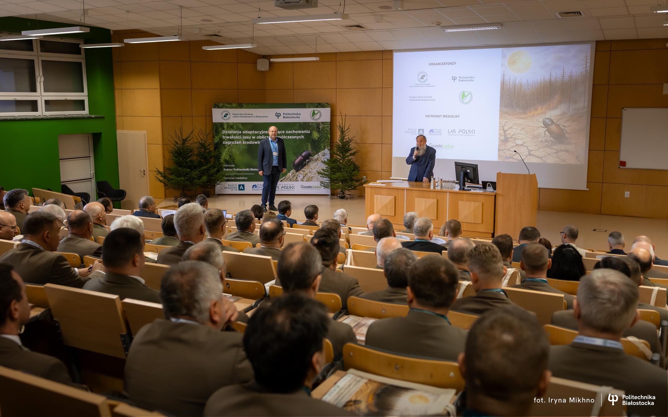 Prelegenci – eksperci z Ministerstwa Klimatu i Środowiska, Lasów Państwowych, Instytutu Dendrologii PAN, Instytutu Badawczego Leśnictwa, SGGW, Uniwersytetu Rolniczego w Krakowie oraz Instytutu Nauk Leśnych Politechniki Białostockiej – 9 kwietnia 2026 roku przedstawili najnowsze wyniki badań dotyczące stanu zdrowotnego lasów oraz propozycje konkretnych rozwiązań dla leśnictwa.
