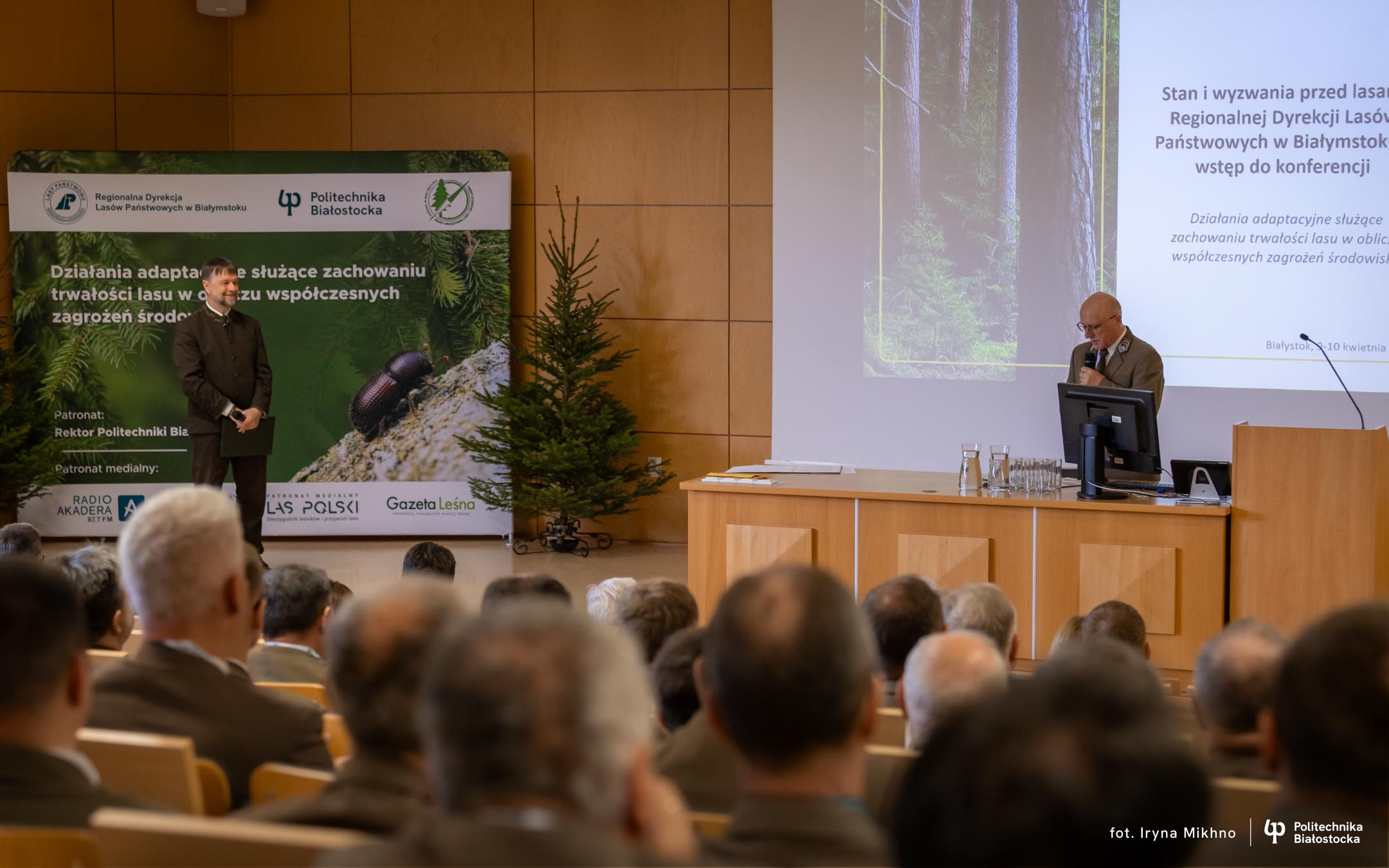 – Sprawy lasów i ochrony dziedzictwa przyrodniczego są w naszej uczelni równie ważne jak twarde, czysto techniczne kierunki – podkreśla dr hab. inż. Mirosław Świercz, prof. PB, I Zastępca Rektor Politechniki Białostockiej. – Jesteśmy bardzo dumni z tego, że kontakt z lasami, zapoczątkowany jeszcze przez Zamiejscowy Wydział Leśny Politechniki Białostockiej w Hajnówce, jest z powodzeniem kontynuowany przez Instytut Nauk Leśnych, który od 2019 roku funkcjonuje na Wydziale Budownictwa i Nauk o Środowisku. To wizytówka uczelni, skupiająca zarówno teoretyków, jak i praktyków – leśników, przedstawicieli parków narodowych oraz badaczy zajmujących się ochroną przyrody i lasu.