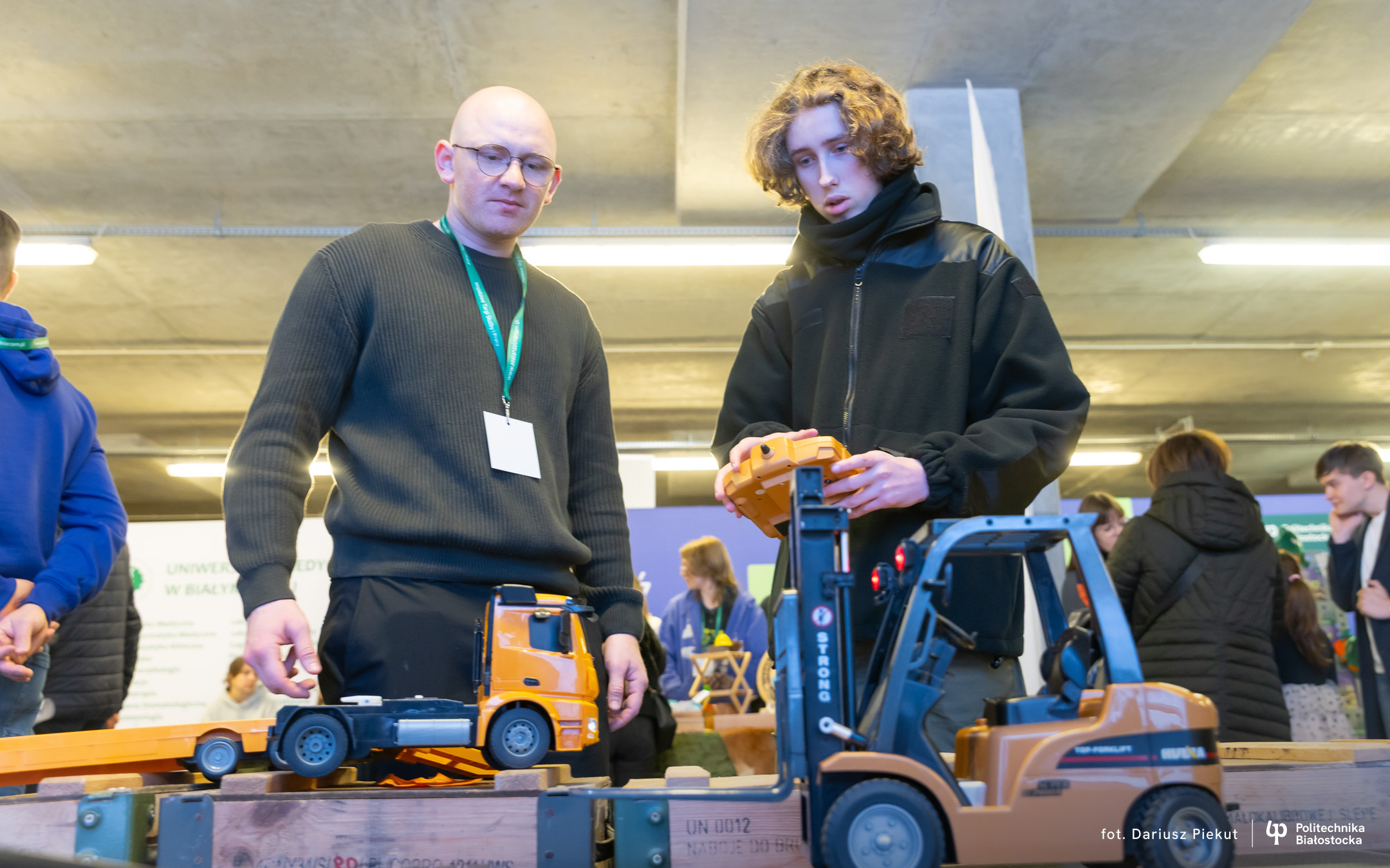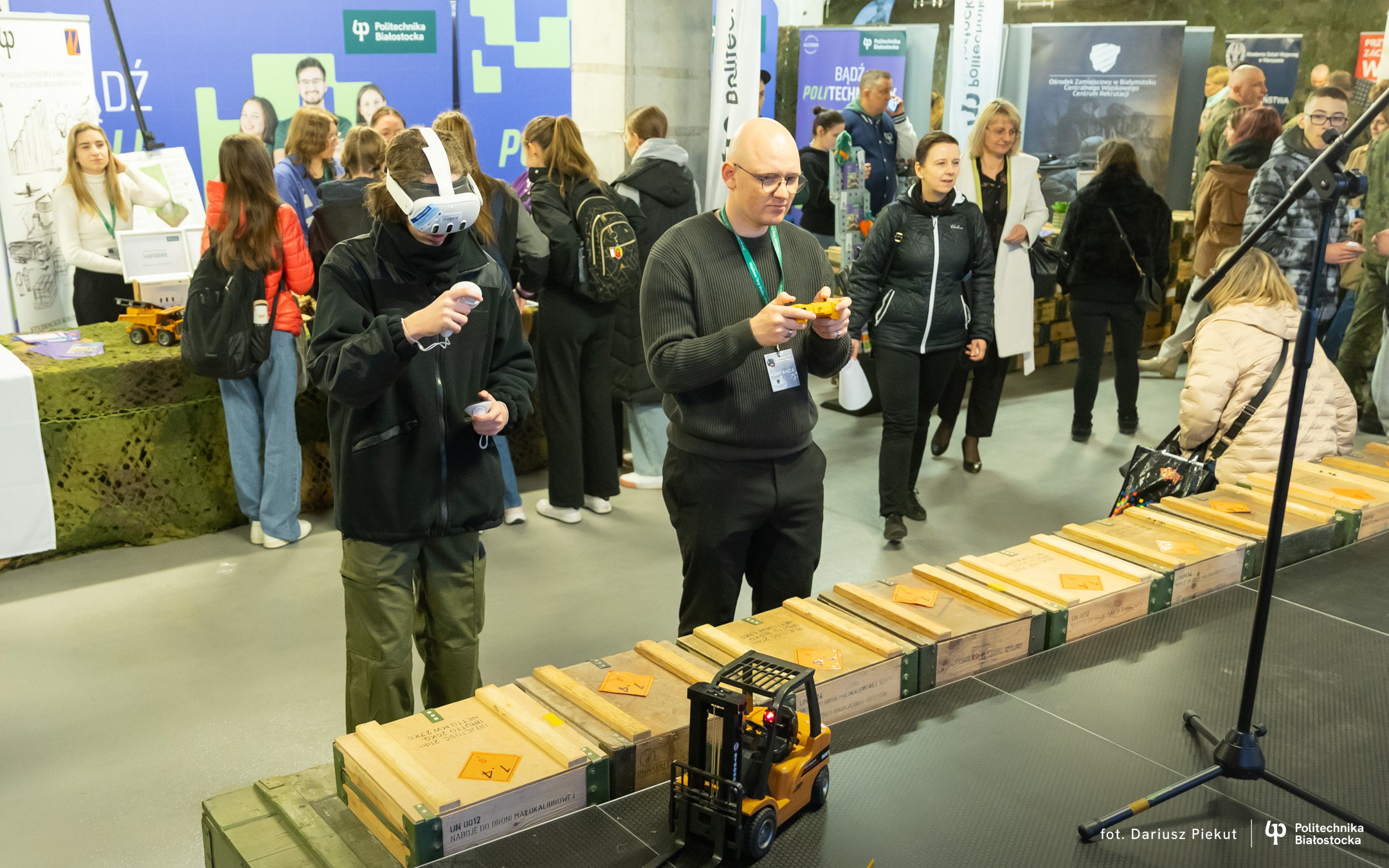 – Uczestnicy mogą założyć okulary VR i sprawdzić siebie w kierowaniu wózkiem widłowym, czy zdalnie sterowanymi miniaturami maszyn – wyjaśnia Agata Dąbrowska, studentka logistyki na Wydziale Inżynierii Zarządzania.