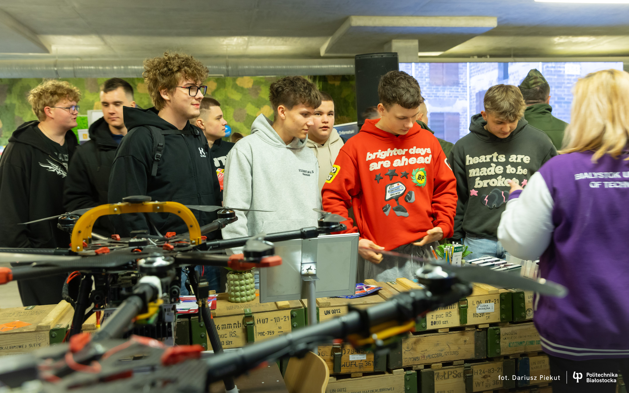 Jedną z atrakcji, które Uczelnia przygotowała dla uczestników wydarzenia na stadionie, jest stoisko z dronami, w tym modularny system obserwacyjno – inspekcyjny oparty na latającej platformie wielowirnikowej zasilanej ze stacji naziemnej – efekt pracy naukowców na Wydziale Elektrycznym Politechniki Białostockiej.