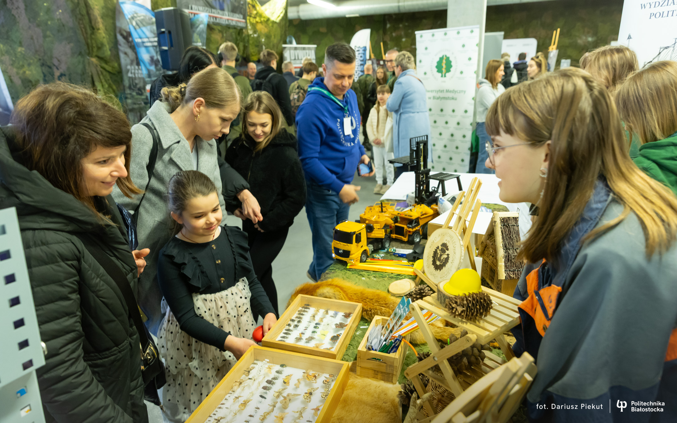 – Przygotowaliśmy dla najmłodszych zabawę z rozpoznawania owadów i konkursy wiedzy – mówi  Laura Kościukiewicz, studentka Politechniki Białostockiej. – Dlaczego tu jesteśmy? Leśnicy współpracują ze służbami mundurowymi. Nasze studia pozwalają nam na naukę topografii terenu i poruszania się po lesie, co jest przydatną umiejętnością nie tylko w przyszłej pracy.