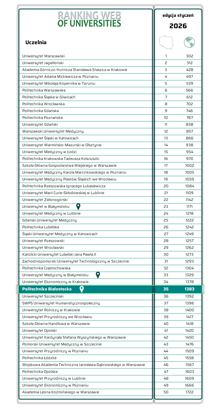 Politechnika Białostocka w Rankingu Web of Universities (Webometrics)