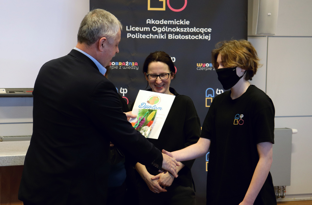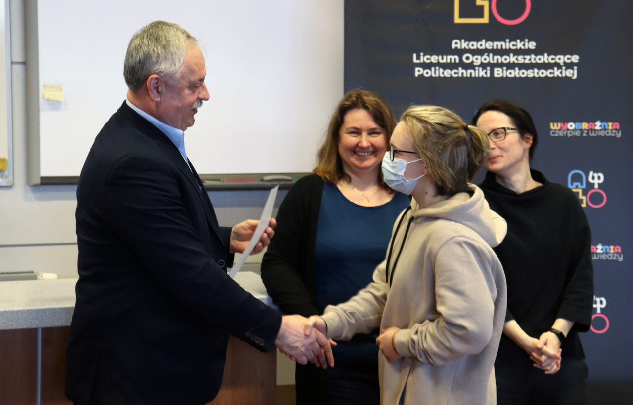 Dyrektor Józef Piotr Klim złożył laureatom gratulacje oraz wręczył dyplomy i nagrody. Podziękowania otrzymali również nauczyciele informatyki: Zdzisław Babicz, Anna Łupińska–Dubicka i Anetta Pogrebniak.