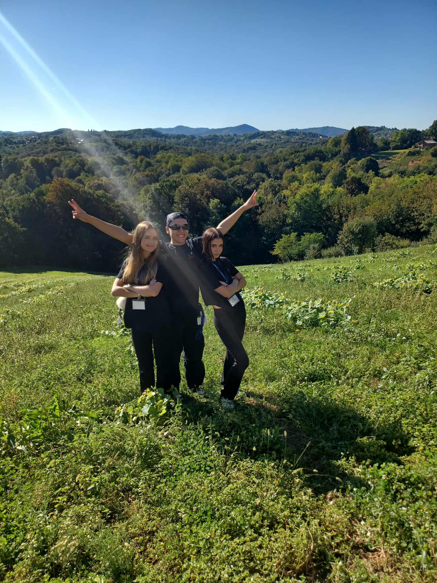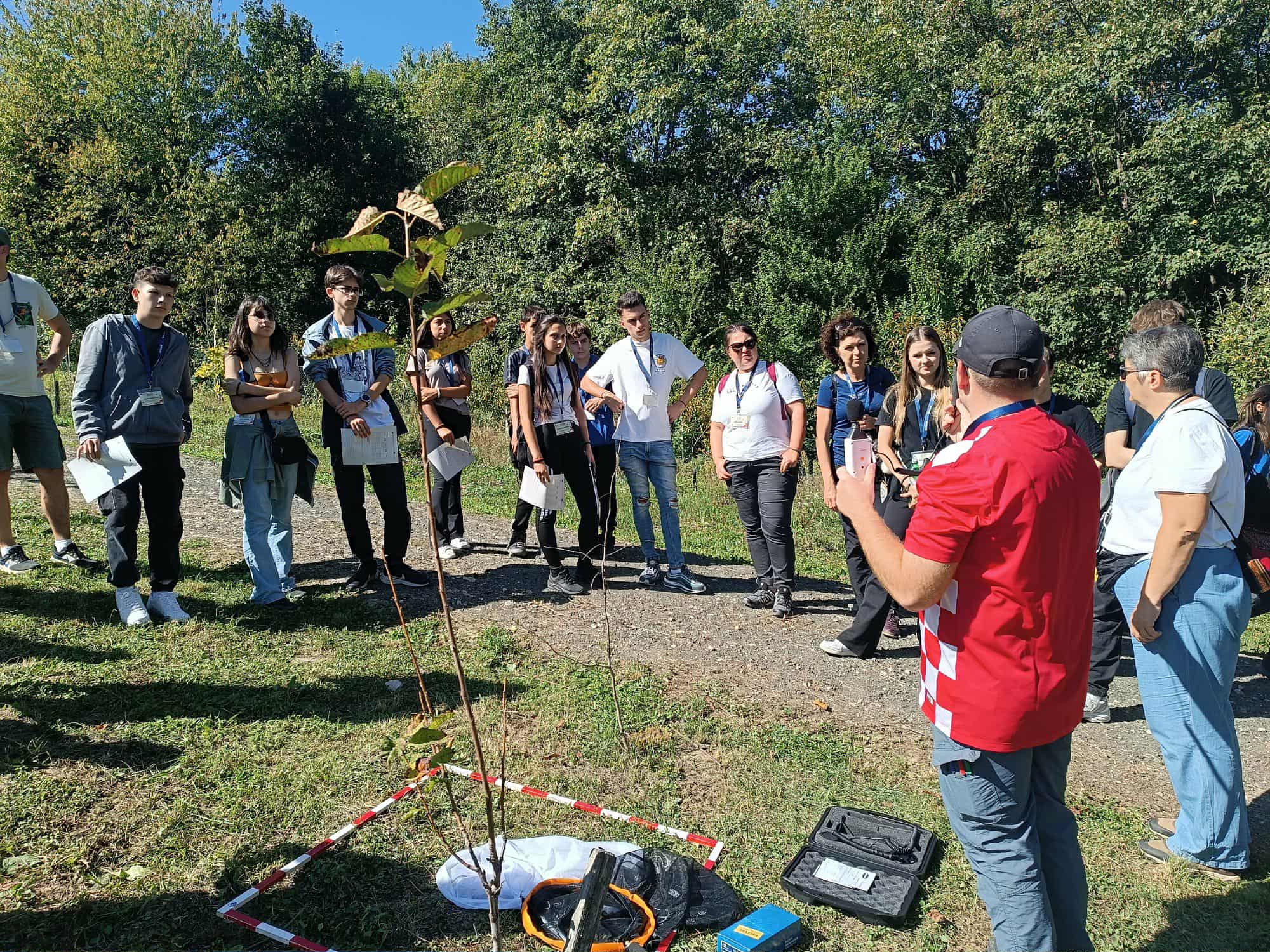 Poranek w Chorwacji przywitał nas piękną pogodą. Po przejechaniu do lokalnego lasu wysłuchaliśmy relacji uczniów o faunie i florze Chorwacji, a szczególnie okolic miasteczka Varaždin. Usłyszeliśmy ciepłe słowa powitania oraz poznaliśmy bliżej misję szkoły partnerskiej. Następnie nadszedł czas na prezentacje krajów, regionów oraz szkół poszczególnych państw biorących udział w projekcie:
