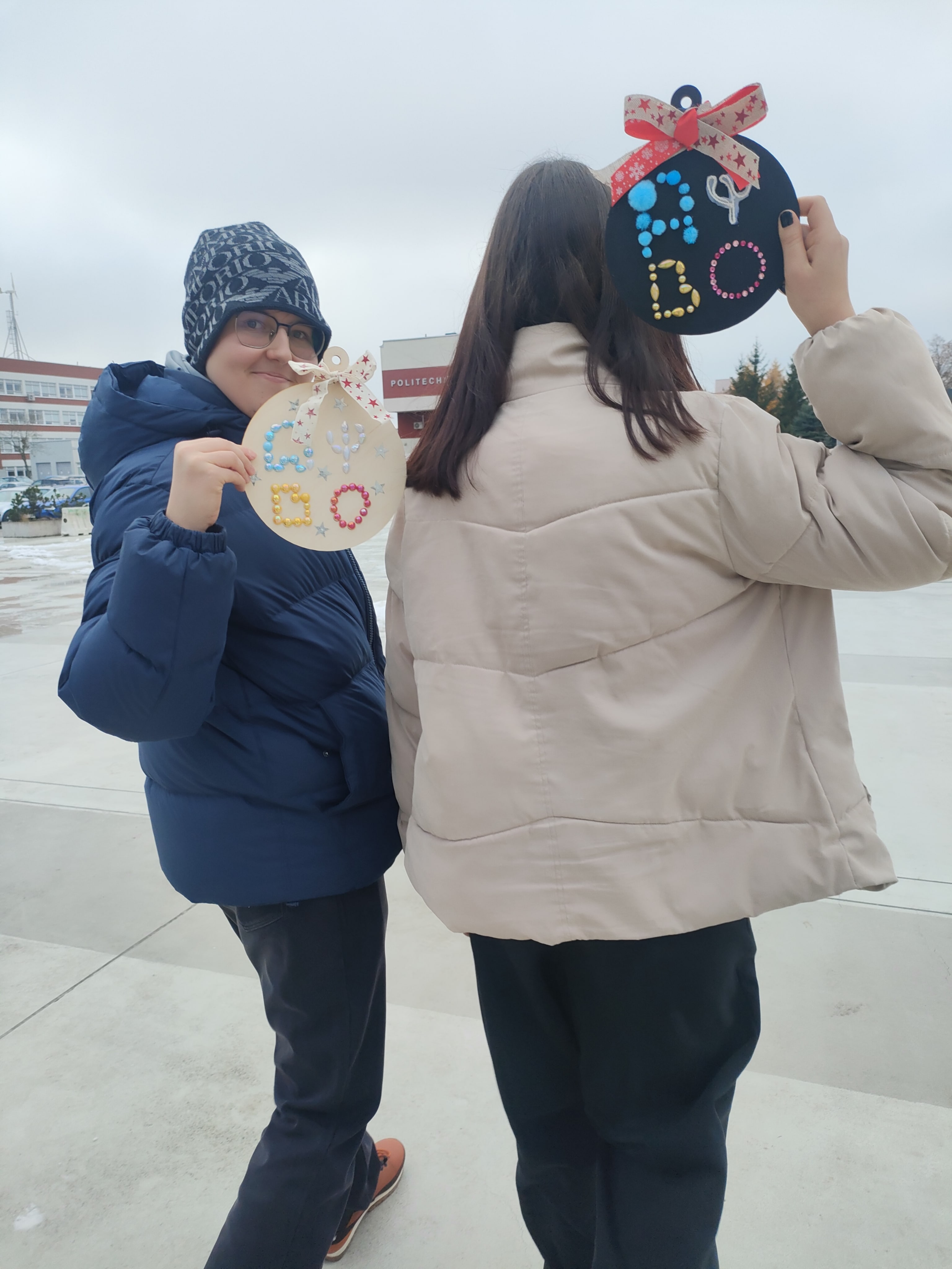 – Mieliśmy dzisiaj pisać test, ale akurat wyszło, że będziemy dzisiaj kleić bombki – cieszy się Oliwia Struk. Właśnie się dowiedziała, że bombkę warto zabrać ze sobą i zawiesić od 1do 3 grudnia samodzielnie na politechnicznej choince.