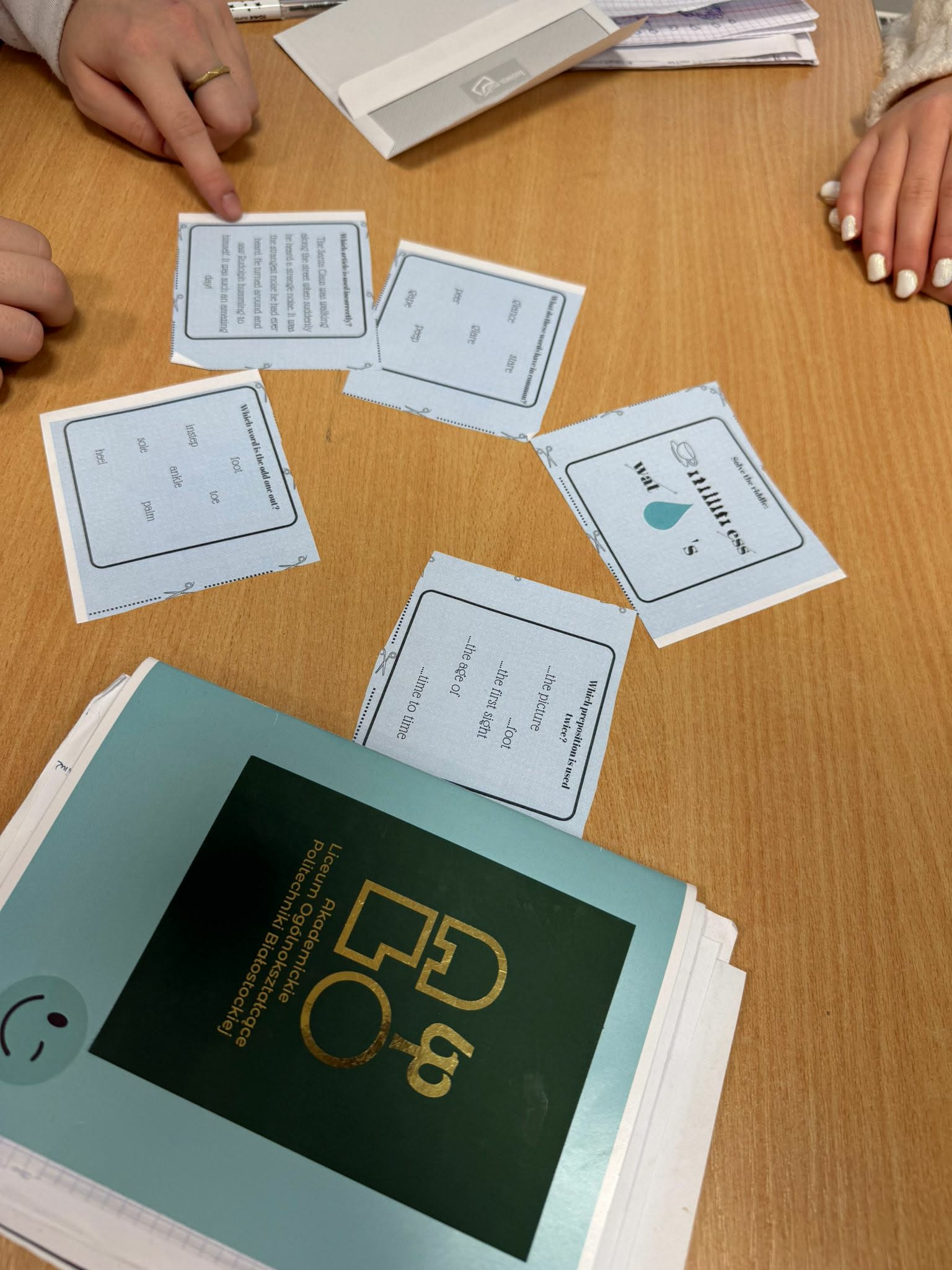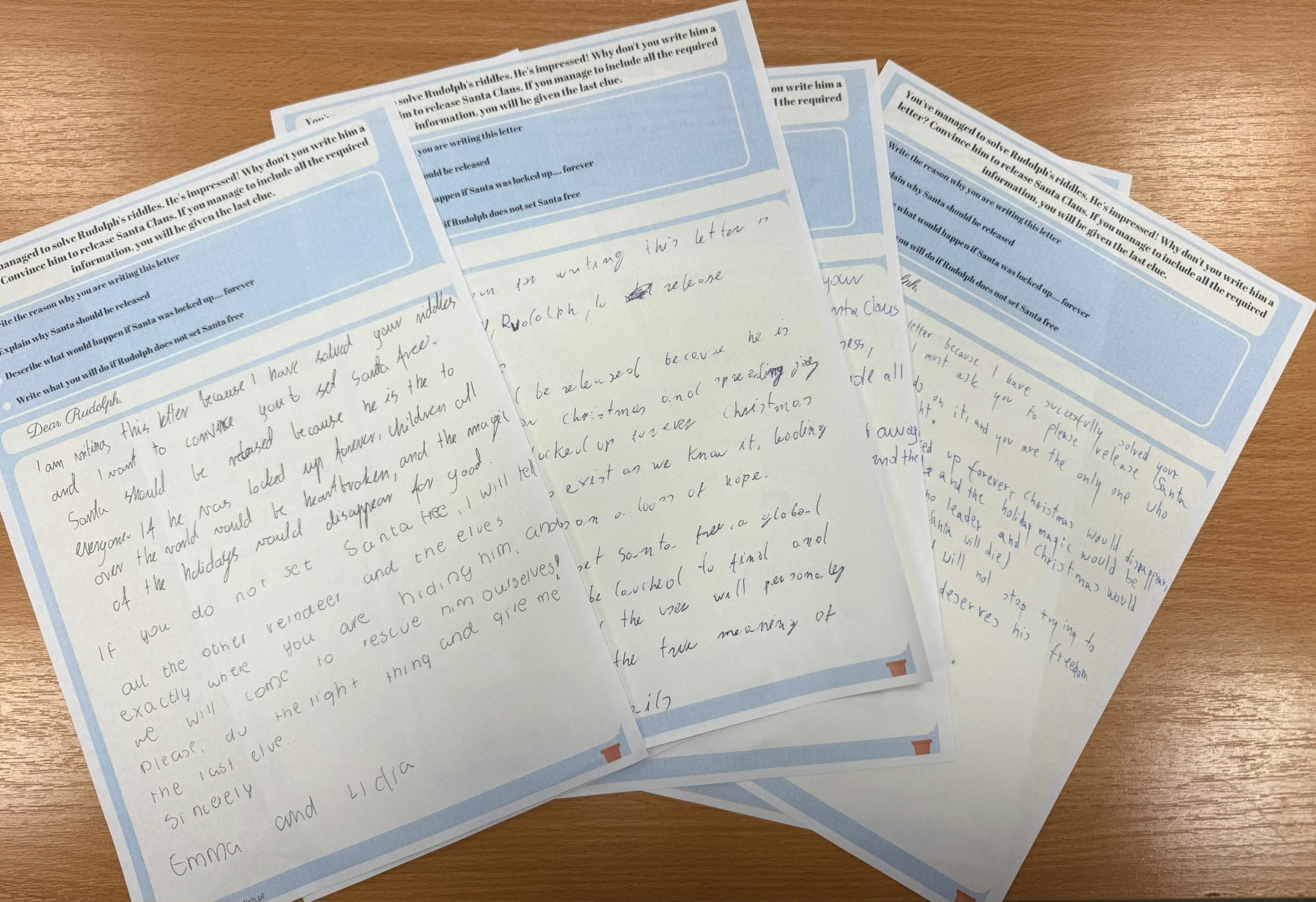 W ramach świątecznej lekcji z języka angielskiego uczniowie wzięli udział w zabawie edukacyjnej w konwencji escape roomu, której celem było uwolnienie Świętego Mikołaja. Zadania miały charakter językowy i logiczny oraz wymagały ścisłej współpracy w grupie. Uczestnicy musieli m.in. rozwiązać krzyżówkę, zmierzyć się z zagadkami logicznymi, uzupełnić ze słuchu brakujące słowa kultowej świątecznej piosenki, a także napisać list do renifera Rudolfa – który, ku zaskoczeniu wszystkich, okazał się porywaczem Mikołaja. Zajęcia, prowadzone w formie grywalizacji, pozwoliły uczestnikom nie tylko rozwijać i utrwalać umiejętności językowe, lecz także doskonalić kompetencje pracy zespołowej, komunikacji oraz rozwiązywania problemów w kreatywny sposób. Dobra wiadomość: uczestnikom kursu udało się uwolnić Świętego Mikołaja – prezenty w tym roku będą!