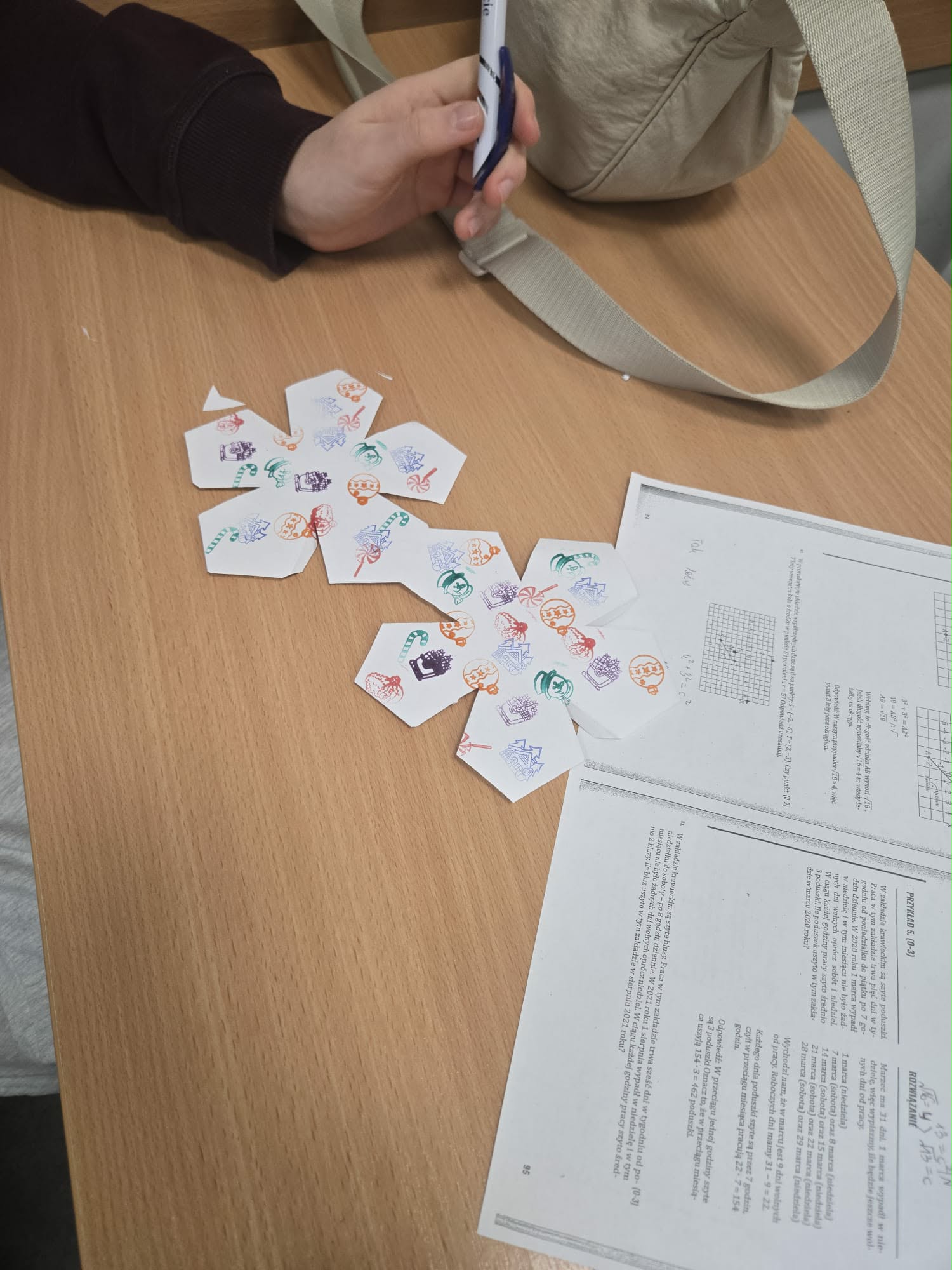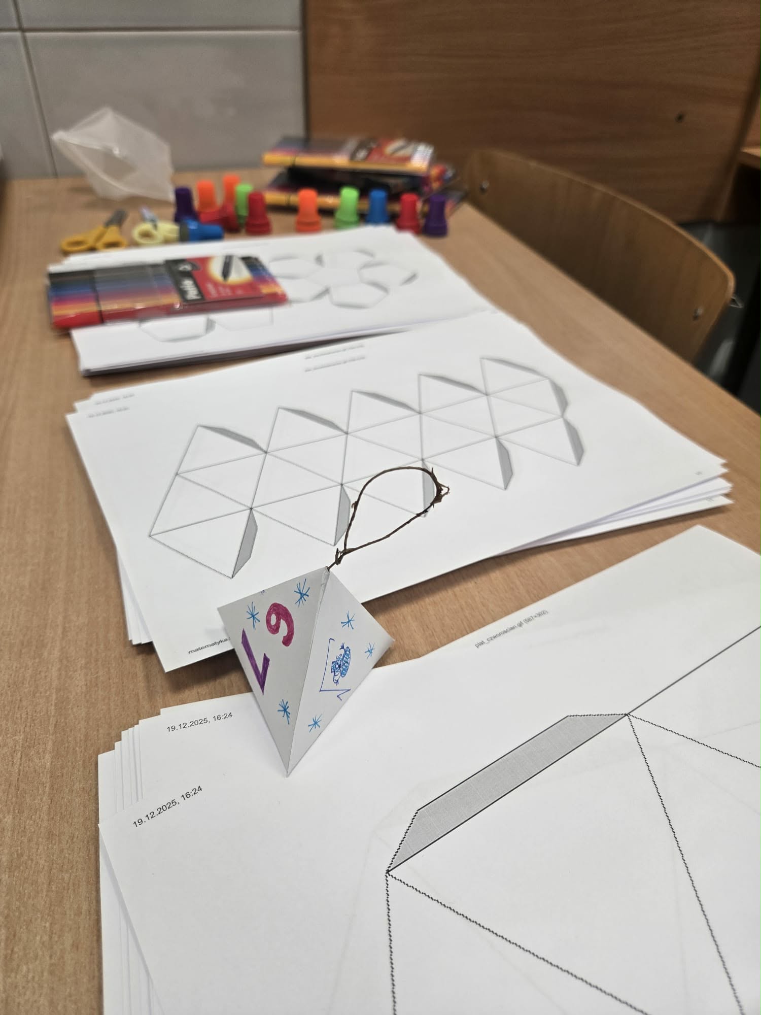 Świąteczna edycja zajęć pokazała, że nauka do egzaminu ósmoklasisty może być nie tylko efektywna, ale również przyjemna. Takie inicjatywy sprzyjają utrwalaniu wiedzy, integracji uczniów oraz budowaniu pozytywnego nastawienia do nadchodzącego egzaminu. Na matematyce uczniowie tworzyli bombki z brył platońskich.