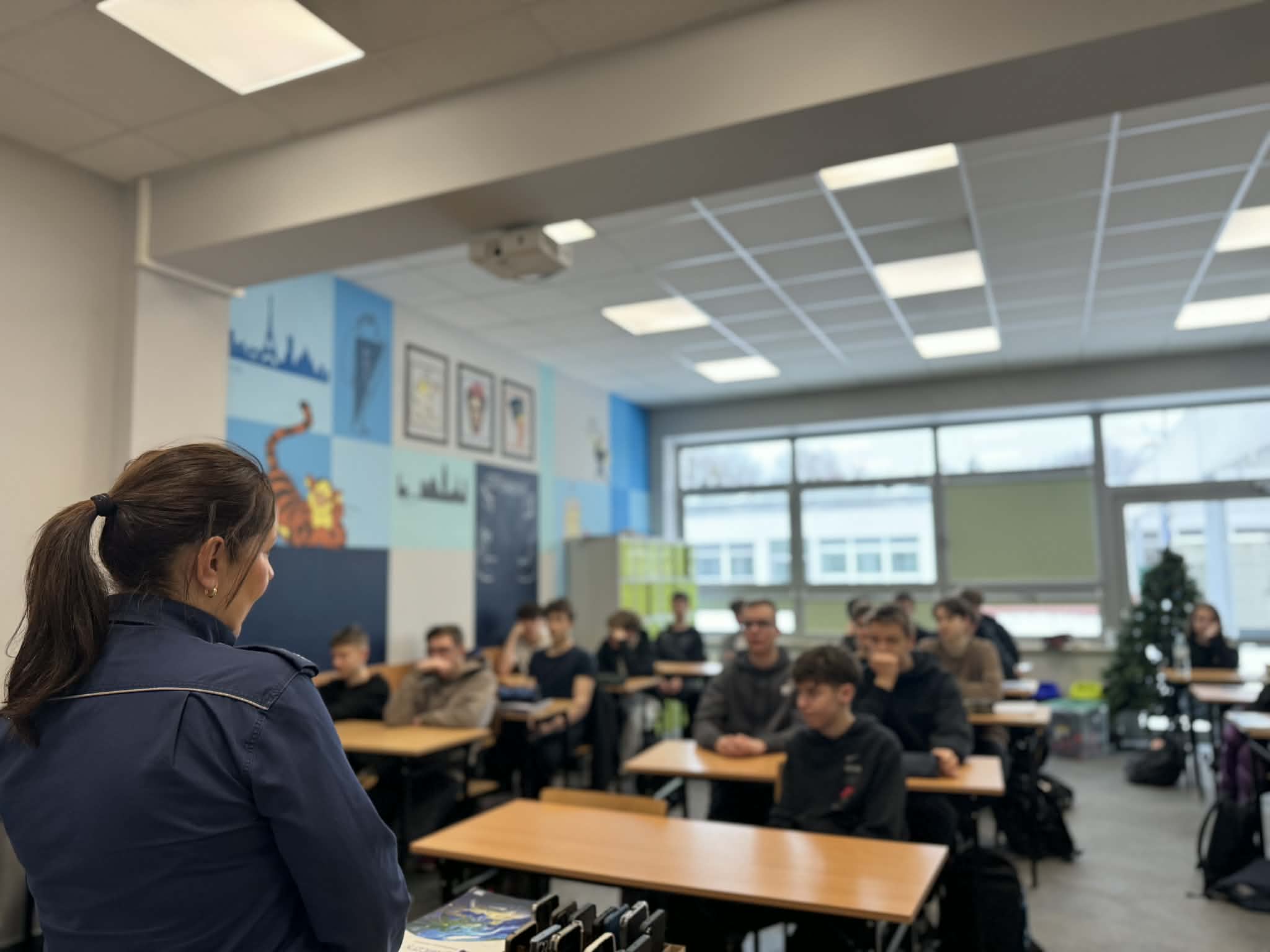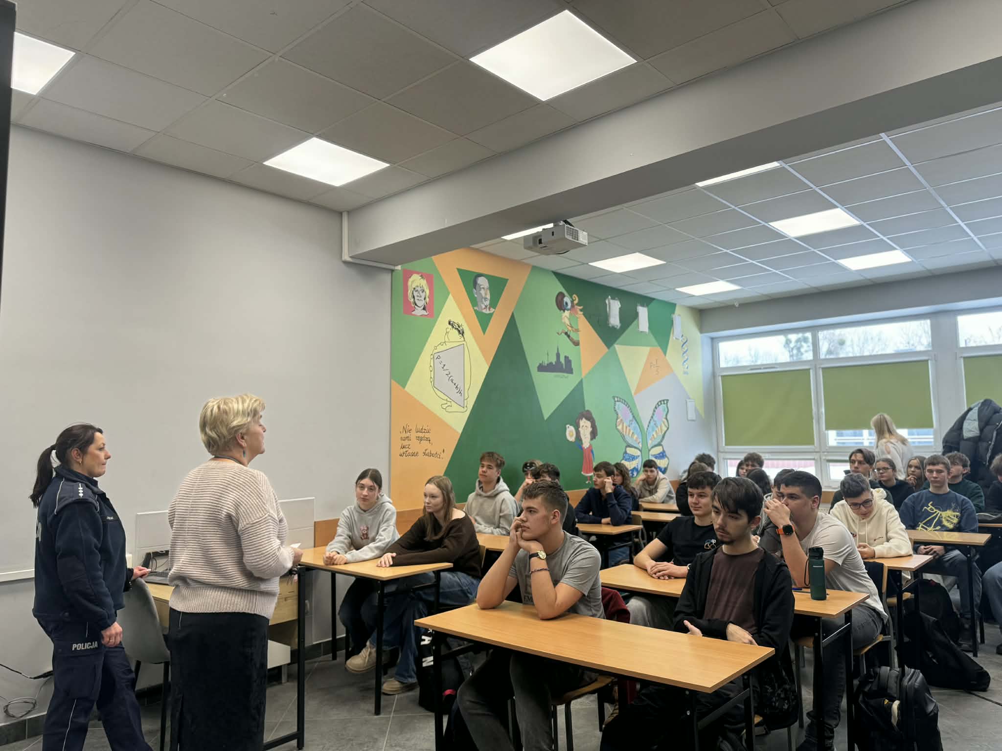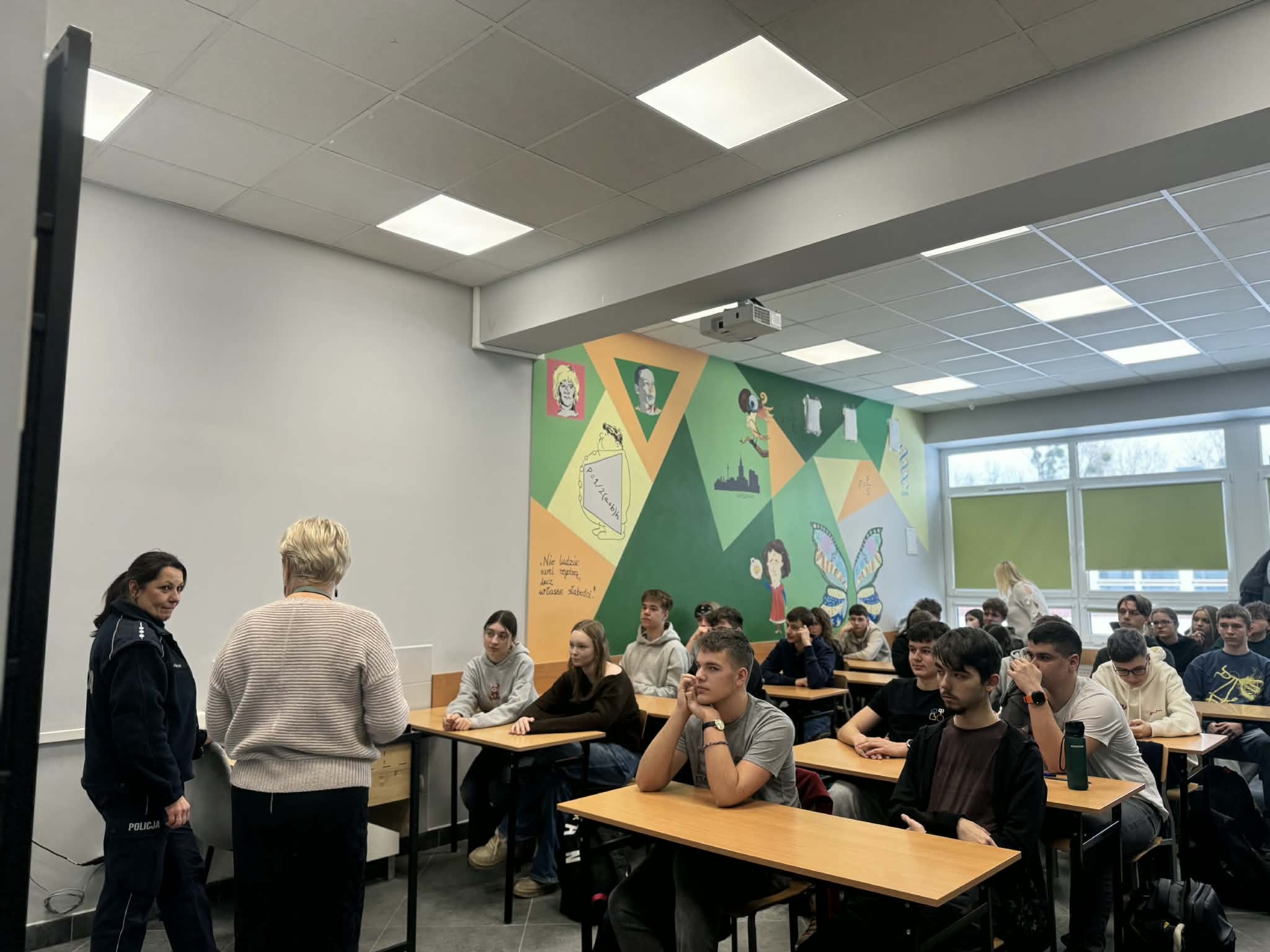 Tematem spotkania była cyberprzemoc wśród nieletnich oraz odpowiedzialność prawna młodych osób. Podczas spotkania dowiedzieliśmy się m.in.: jakie konsekwencje prawne mogą wynikać z naszych działań, jakie przestępstwa najczęściej dotyczą osób nieletnich, jak niebezpieczne są narkotyki, dopalacze i inne substancje psychoaktywne oraz jaki mają wpływ na nasze zdrowie i życie, poznaliśmy również wiele ciekawostek i realnych przykładów z pracy policji. Spotkanie było ważną lekcją, która uświadomiła nam, że mamy swój rozum i nie powinniśmy ulegać presji znajomych, a także że młody wiek nie zwalnia z odpowiedzialności za własne czyny.