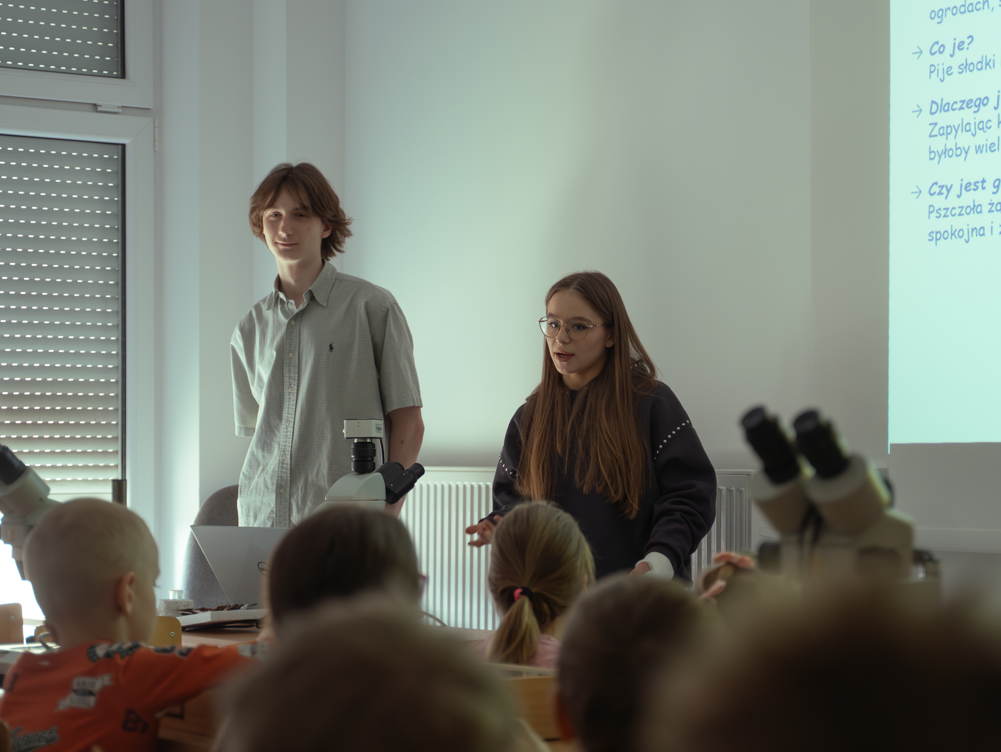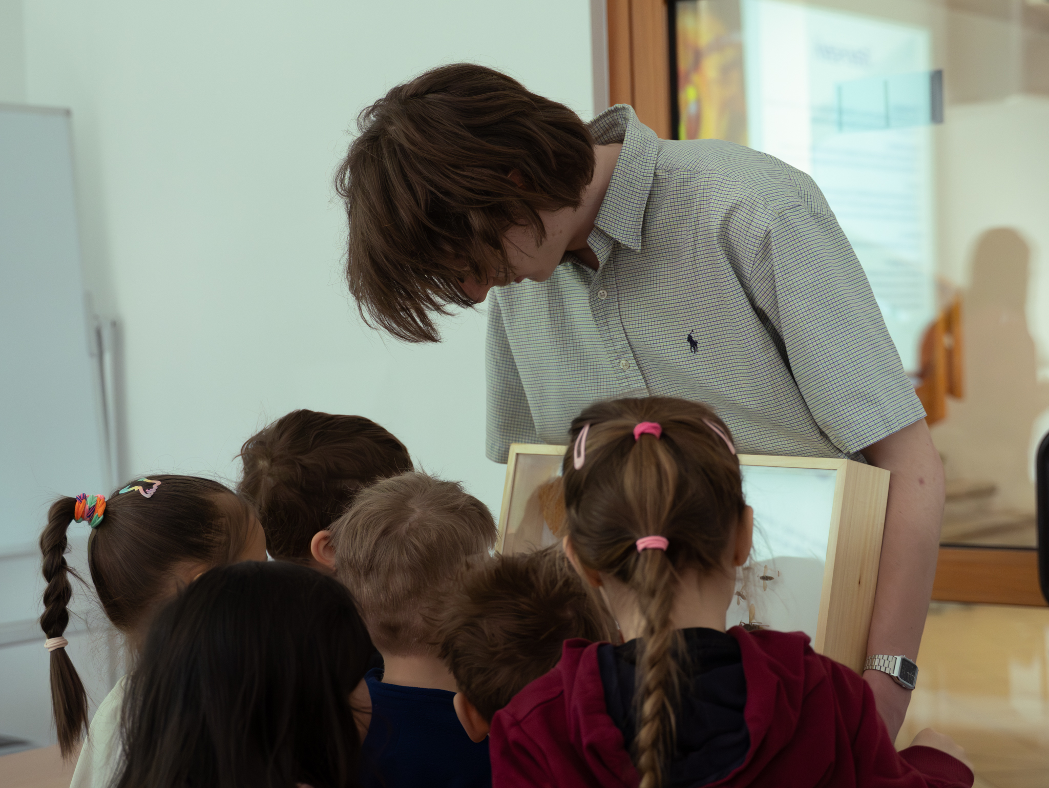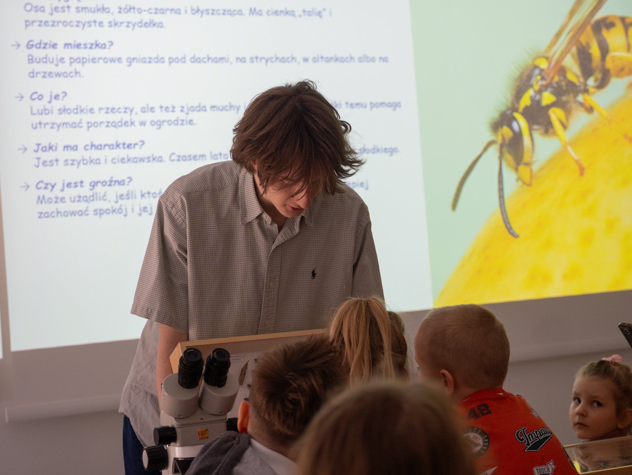Do udziału w tym niecodziennym wydarzeniu zaprosiliśmy przedszkolaczki z Niepublicznego Przedszkola Nr 1 im. Marii Konopnickiej w Białymstoku. Dzięki wsparciu mgr. Konrada Wilamowskiego z Instytutu Nauk Leśnych pogłębiliśmy wiedzę na temat owadów, poznaliśmy wiele ciekawostek, ale największą atrakcją była możliwość obserwowania owadów przez mikroskop oraz motylarnia istniejąca od niedawna na Wydziale Budownictwa i Nauk o Środowisku.