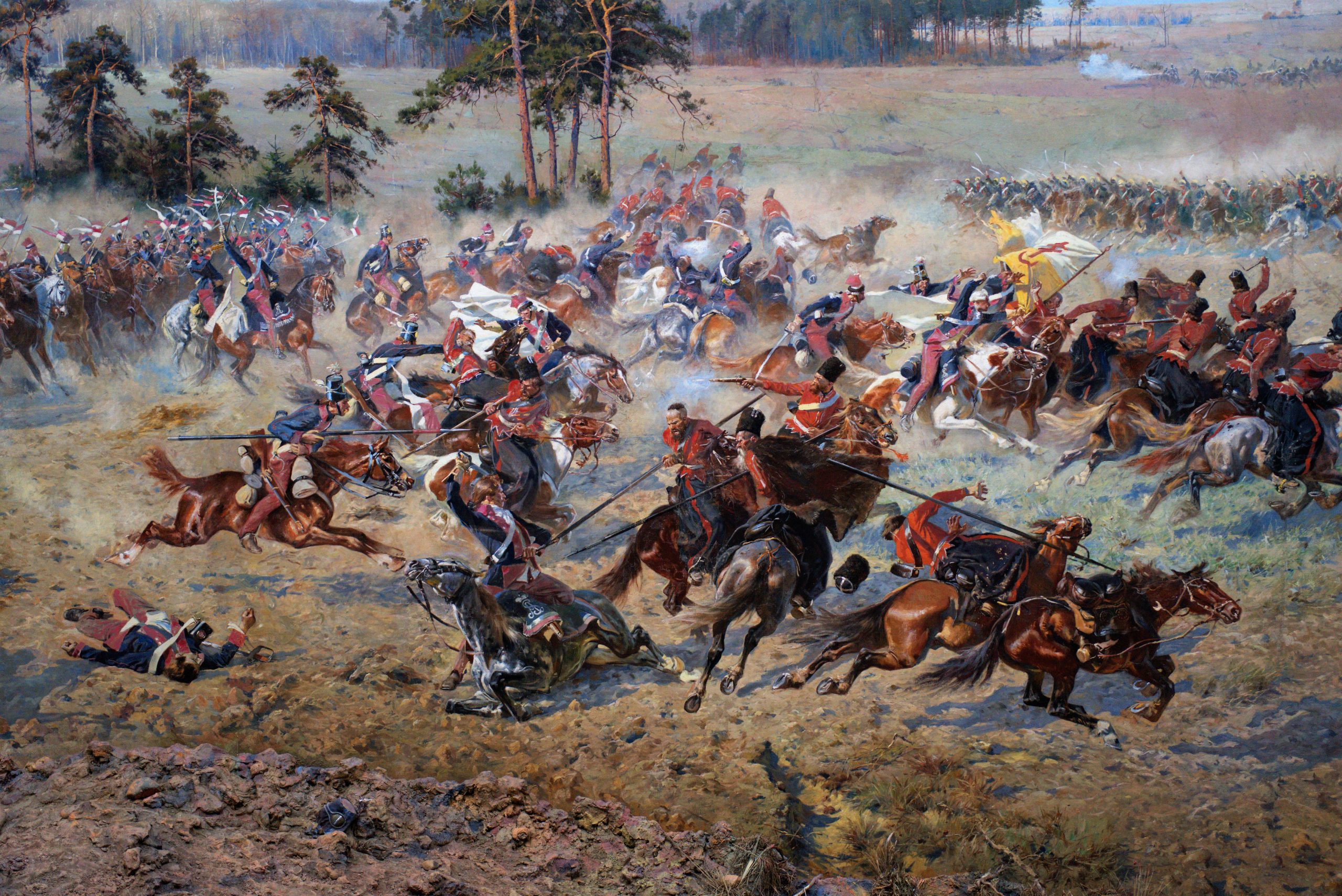 The painting is unique: it is 15 meters high and 114 meters wide, weighs 3.5 tons, and covers an area of 1,800 m2. It shows the victorious battle under the command of General Tadeusz Kościuszko over the Russian army in 1794 during the struggle to preserve Poland’s independence before the final partitions.