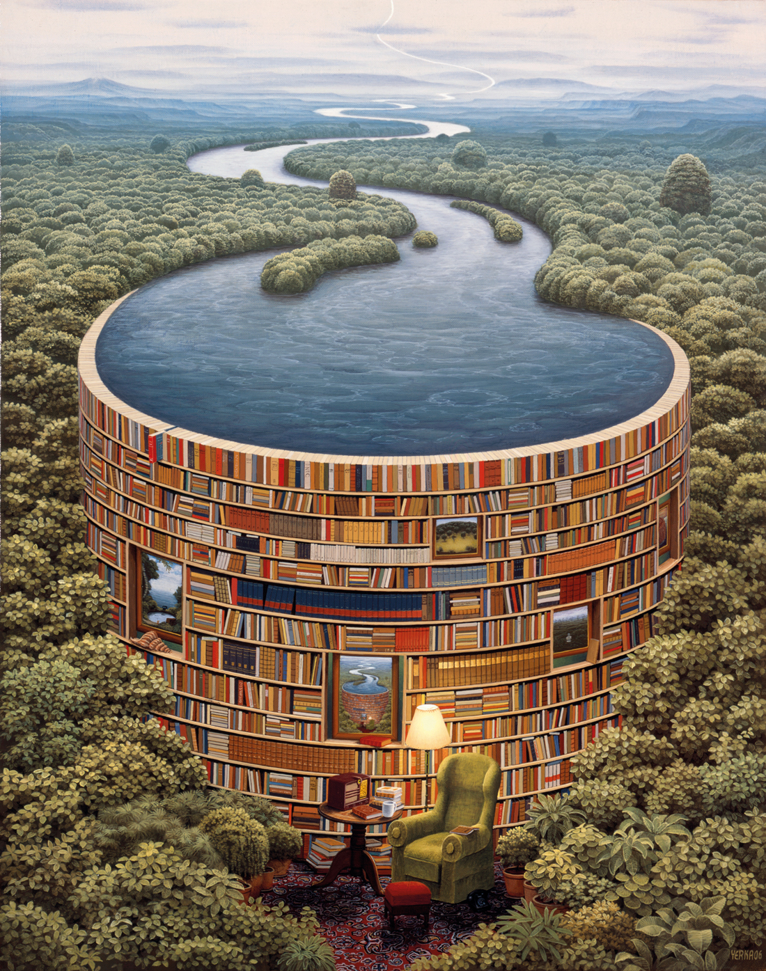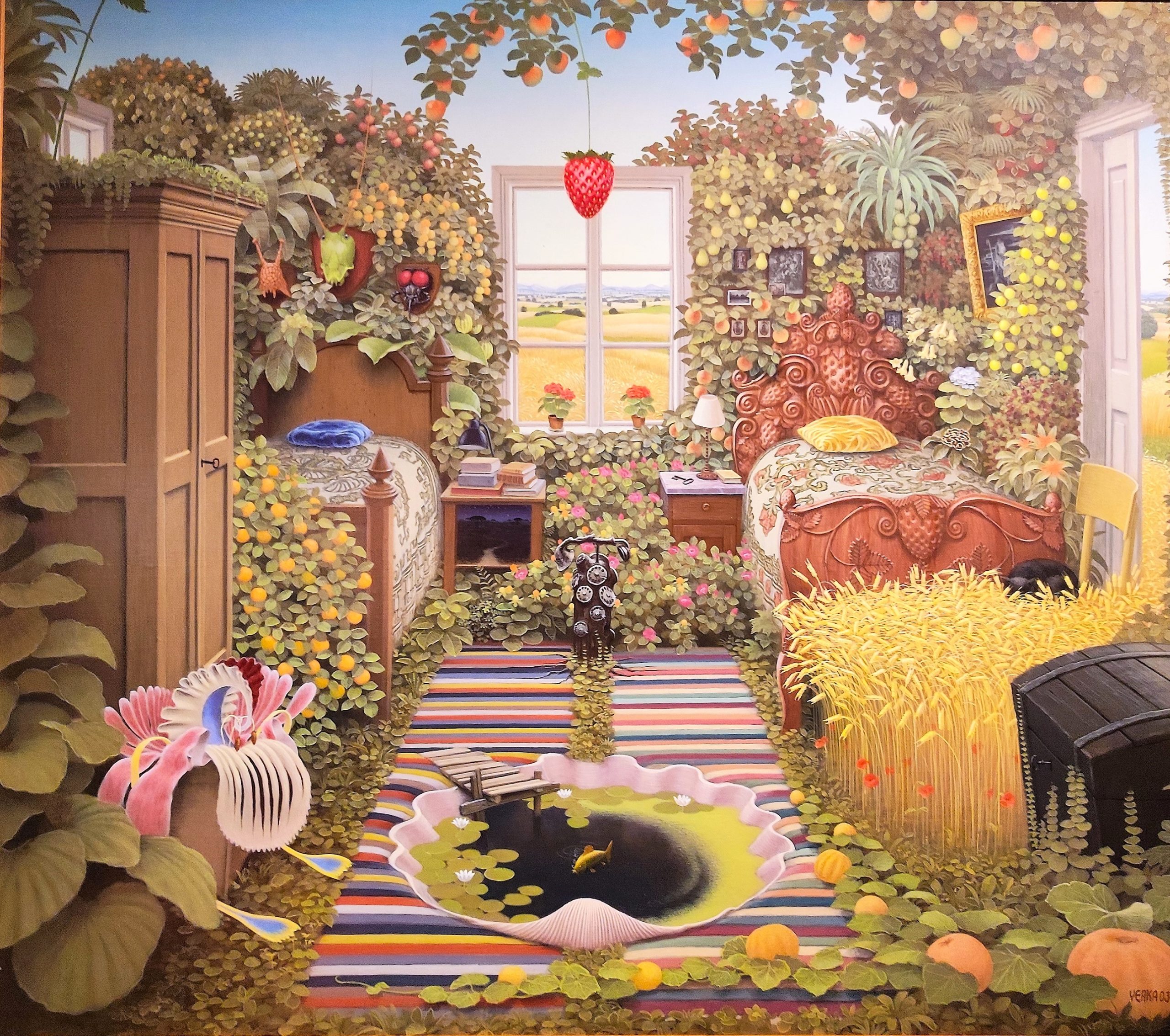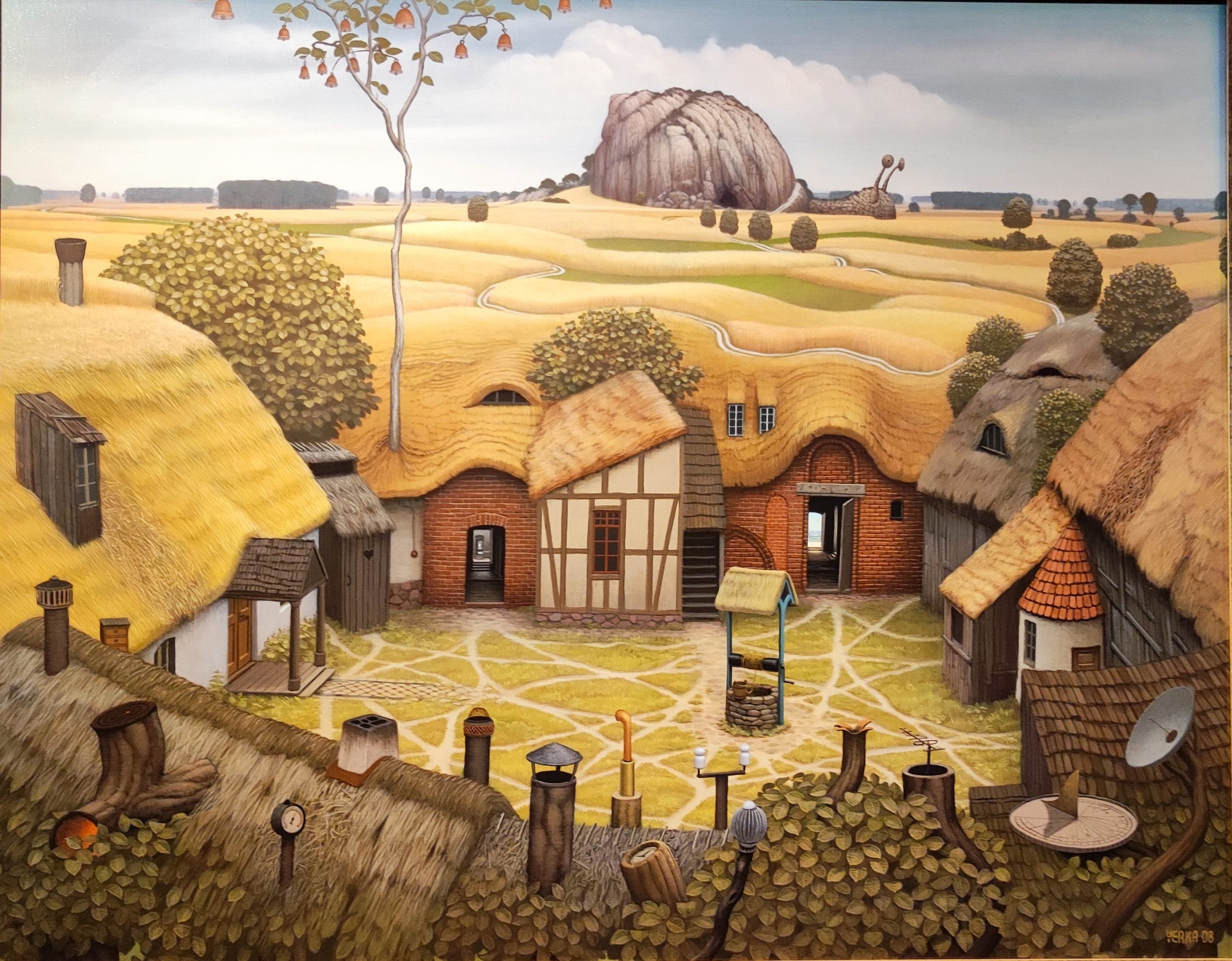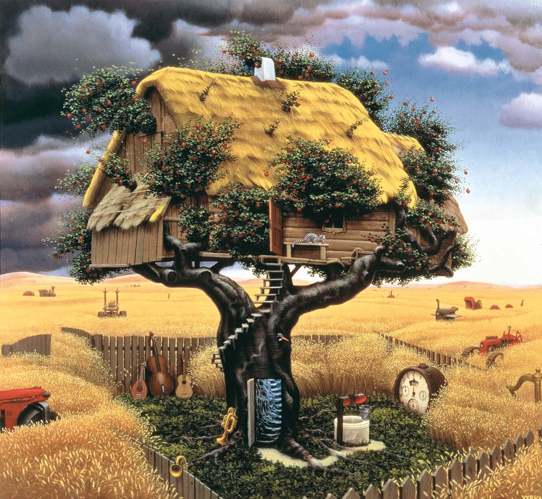 Jacek Yerka – malarz z niesamowitą i nieposkromioną niczym wyobraźnią. Z jego obrazów wyłania się fantastyczny, baśniowy świat, niezwykłe postacie czy zwierzęta, rekwizyty i miejsca, niby dobrze nam znane, ale jakże niecodzienne, symboliczne, zdumiewające i zachwycające. Na pierwszy rzut oka są to obrazy całkiem realistyczne, przykuwają uwagę żywą kolorystyką, ale już po chwili wpadamy do ich wnętrza, dajemy się ponieść fantazji artysty, toniemy w domysłach, skojarzeniach, aluzjach. Bo w świecie Yerki nic nie jest tym, czym na pozór zdaje się być.