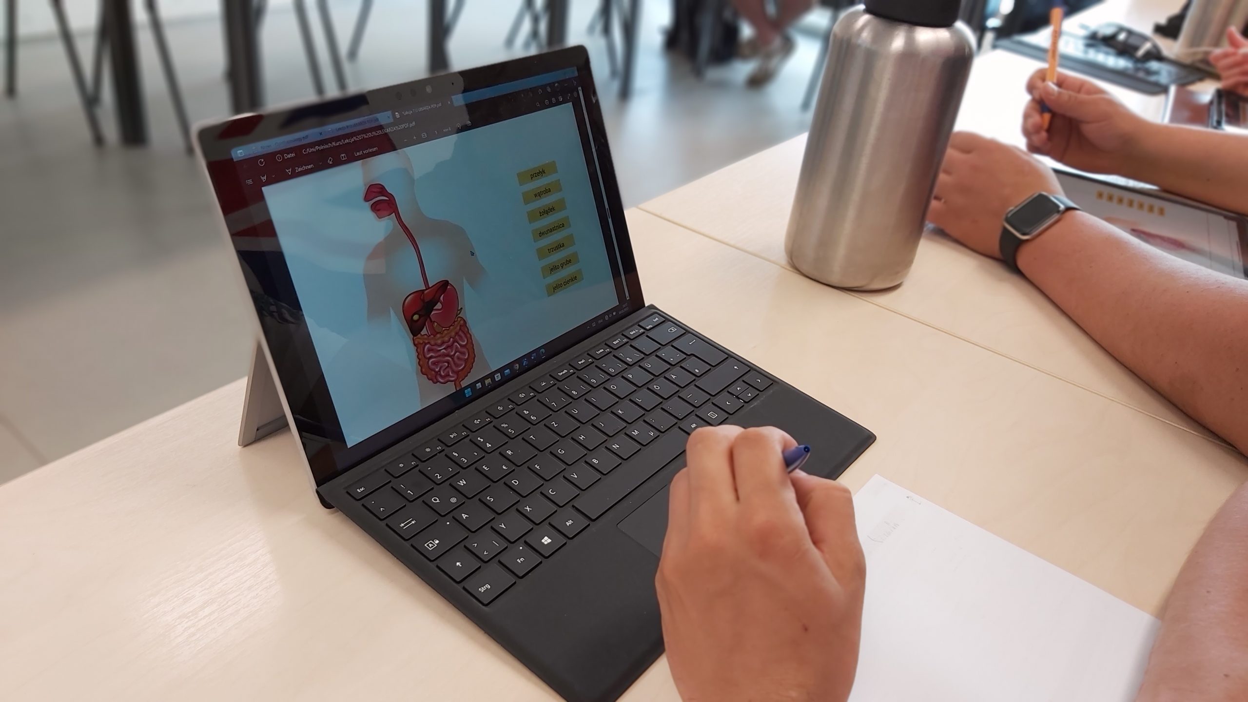 - Części ciała, organy, układy. Ból, choroby, zaburzenia – wywiad medyczny. Części ciała – liczba pojedyncza i mnoga. Czasownik 'boleć’ – liczba pojedyncza i mnoga. Czasownik 'mieć’ wraz z przymiotnikiem i rzeczownikiem (biernik i mianownik, liczba pojedyncza i mnoga)