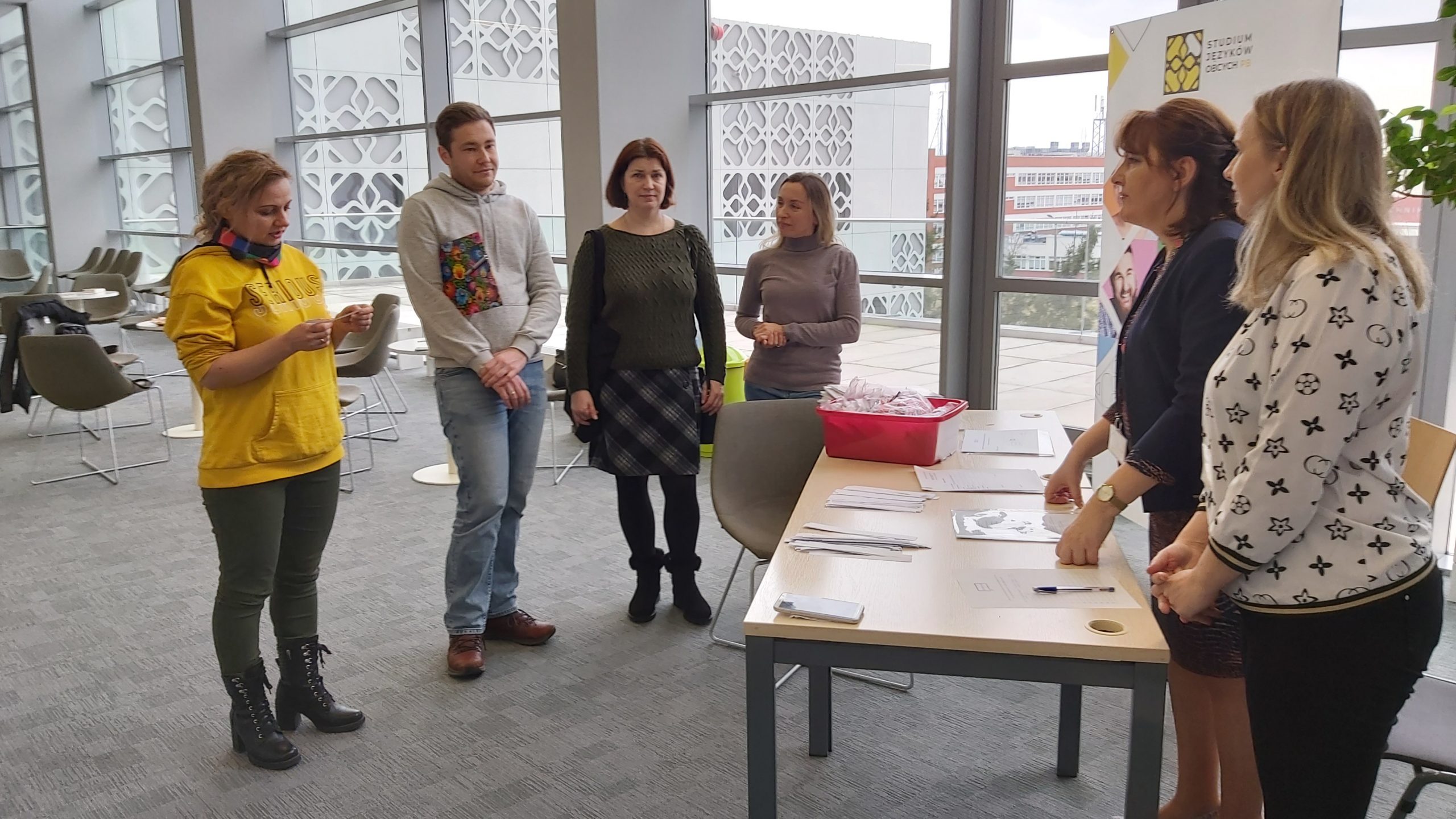 Impreza odbyła się w minioną sobotę, 19 lutego 2022, w holu CNK na 2. piętrze. Tradycyjnie, zaprosiliśmy uczestników do kawiarenki językowej, oraz na konkurs wiedzy o Polsce. W kawiarence, przy kawie i pysznych ciasteczkach, można było zapytać o niuanse znaczeniowe oraz porozmawiać z naszymi lektorami, żeby poćwiczyć swoje umiejętności językowe.