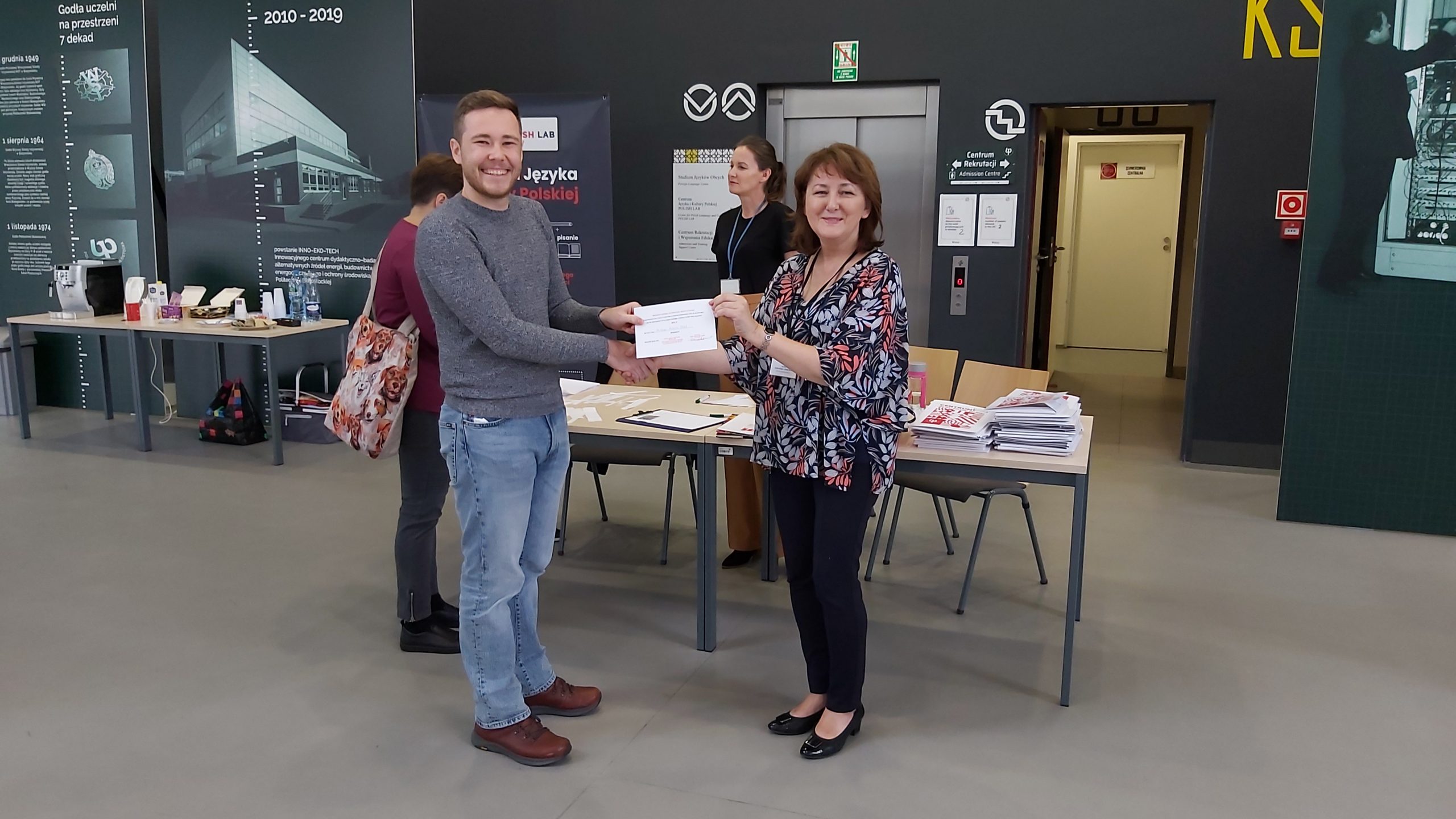 Przez całą imprezę można było wygrać rozmaite gadżety, a to odpowiadając poprawnie na wylosowane pytanie, lub też biorąc udział w quizie po warsztatach. Na zakończenie wydarzenia odbył się konkurs wiedzy o Polsce, w którym nagrodę główną – bon wartości 300 zł na kurs języka polskiego – wygrał Mirkan, student Politechniki Białostockiej z Turcji. Serdecznie gratulujemy!